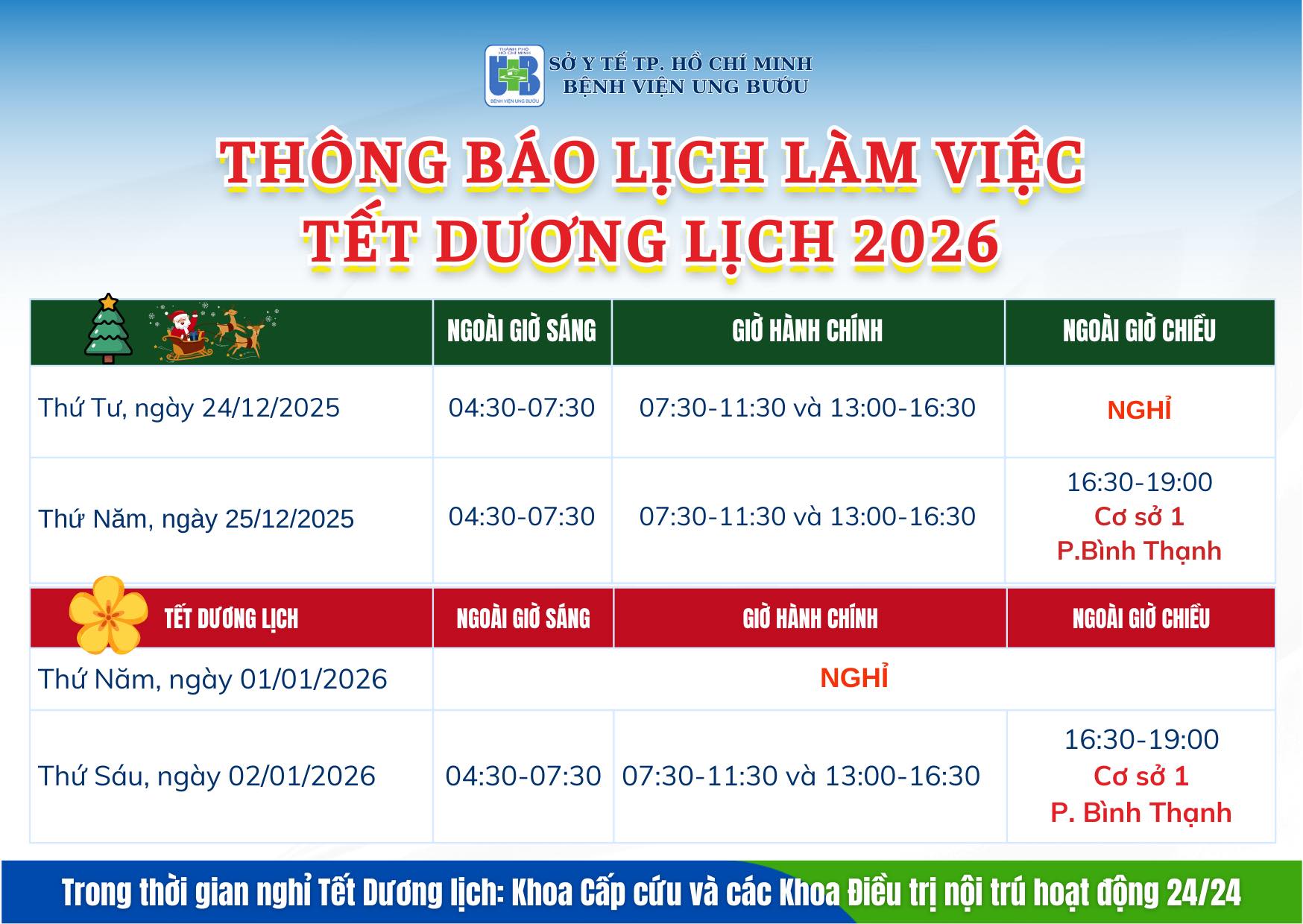 Bệnh viện Ung Bướu TP. Hồ Chí Minh trân trọng thông báo lịch làm việc [...]