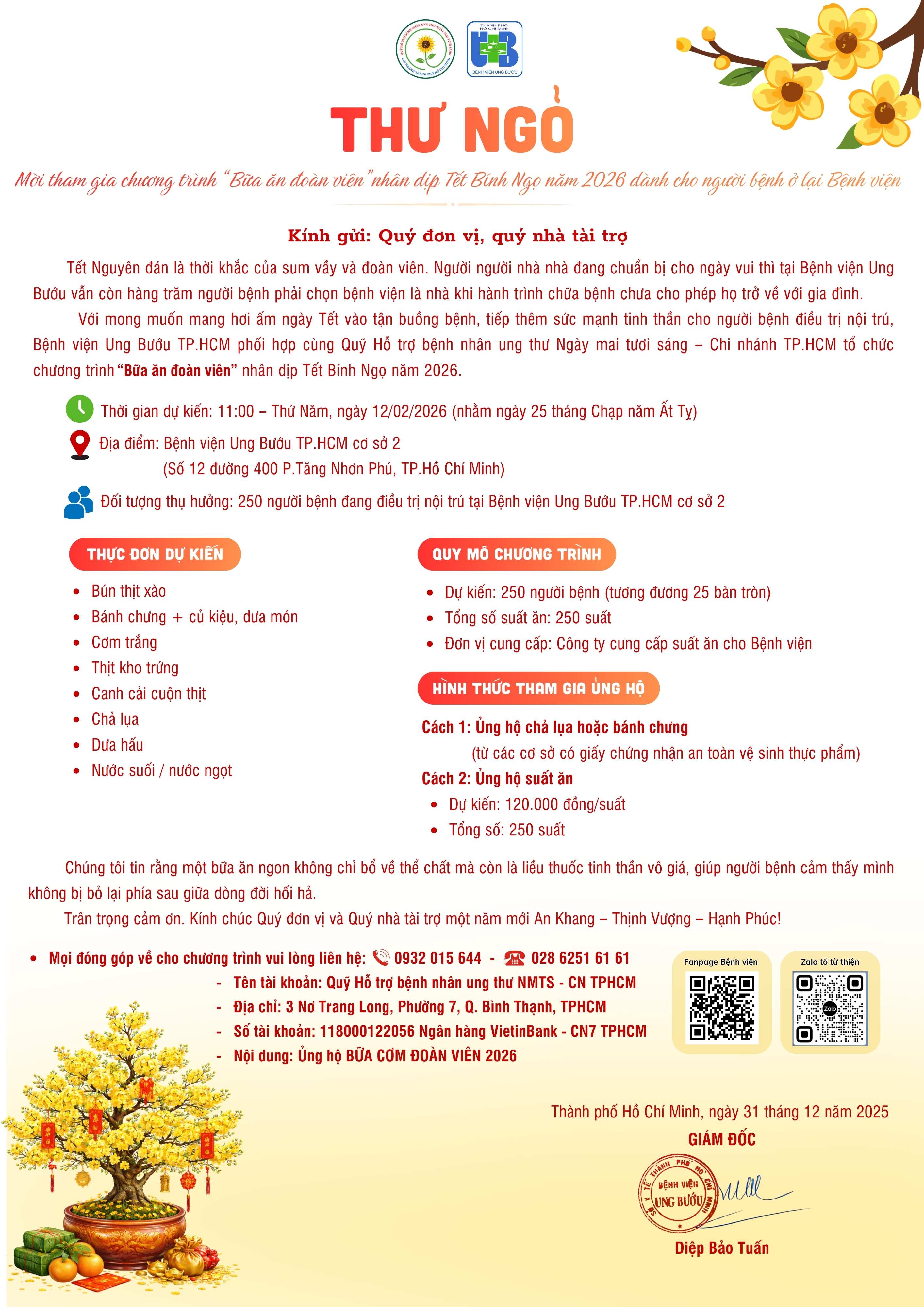 Chiều ngày 08/01/2026, Bệnh viện Ung Bướu TP.HCM đã tổ chức chương trình “Bữa tiệc [...]