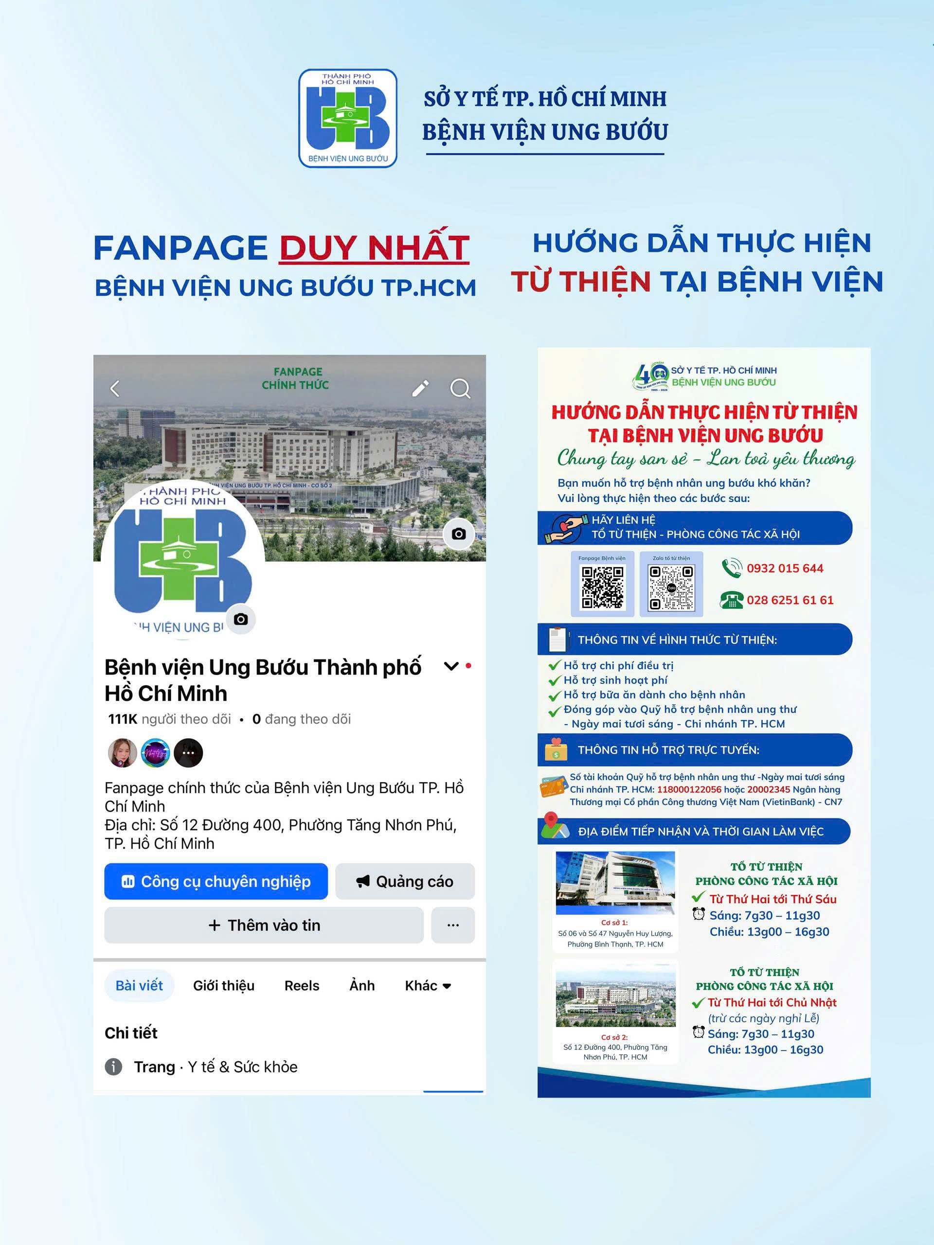 – Bệnh viện Ung Bướu TP.HCM chỉ có duy nhất 01 Fanpage chính thức với hơn 111.000 lượt theo dõi
