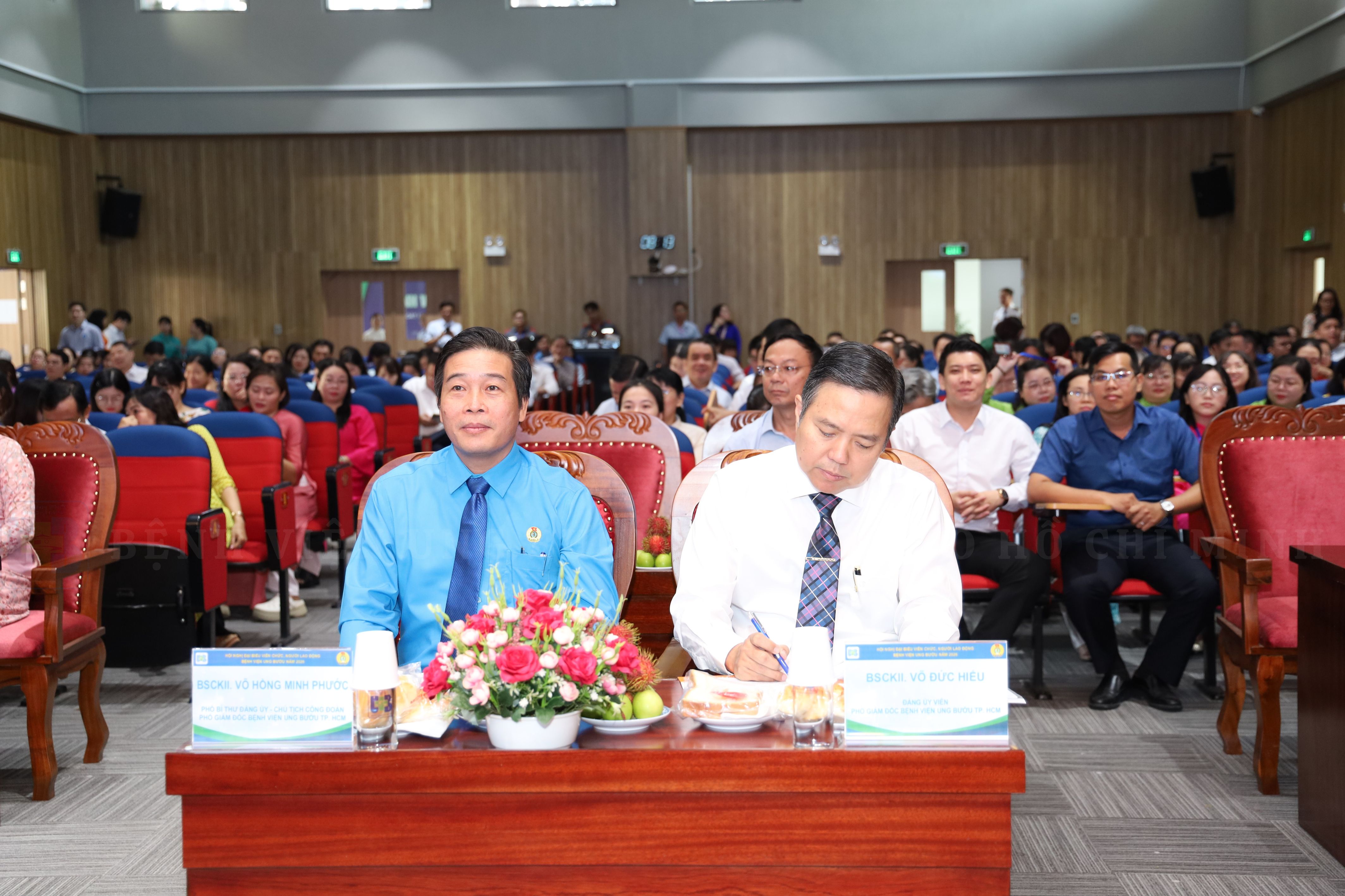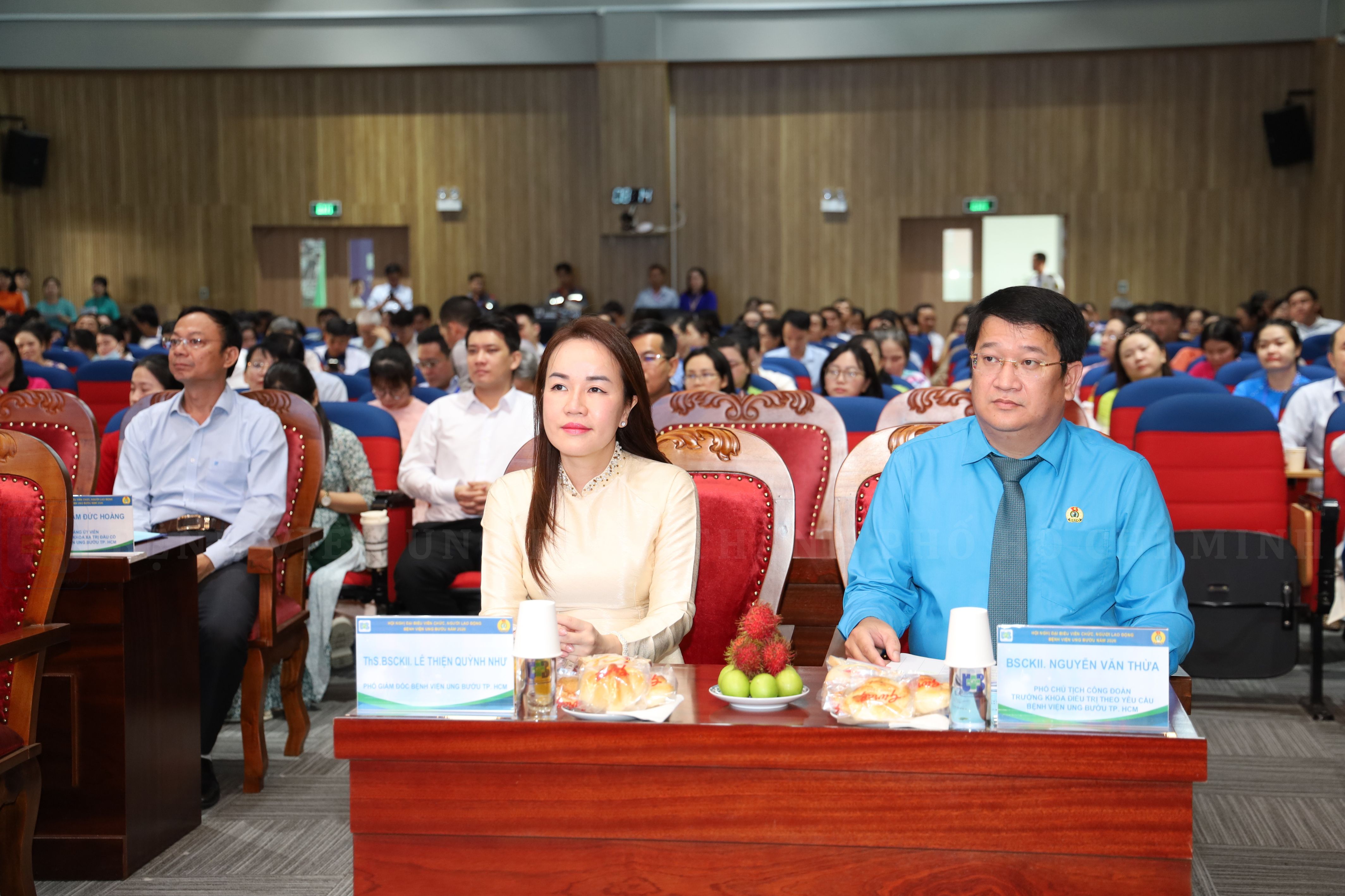 Tham dự hội nghị có đại diện Liên đoàn Lao động TP Hồ Chí Minh, Sở Y tế TP Hồ Chí Minh và chính quyền địa phương; trong đó có đồng chí Nguyễn Thị Vân Hồng, Thành viên Tổ quản lý địa bàn số 1, phụ trách công tác Tổ chức – Kiểm tra, Liên đoàn Lao động TP Hồ Chí Minh và đồng chí Trịnh Tuấn Hùng, Chuyên viên Phòng Tổ chức cán bộ, Sở Y tế TP Hồ Chí Minh. Về phía Bệnh viện Ung Bướu TP Hồ Chí Minh, hội nghị do TS-BS Diệp Bảo Tuấn, Giám đốc Bệnh viện, cùng các Phó Giám đốc Bệnh viện chủ trì, với sự tham dự của 263 đại biểu đại diện cho viên chức, người lao động toàn bệnh viện.