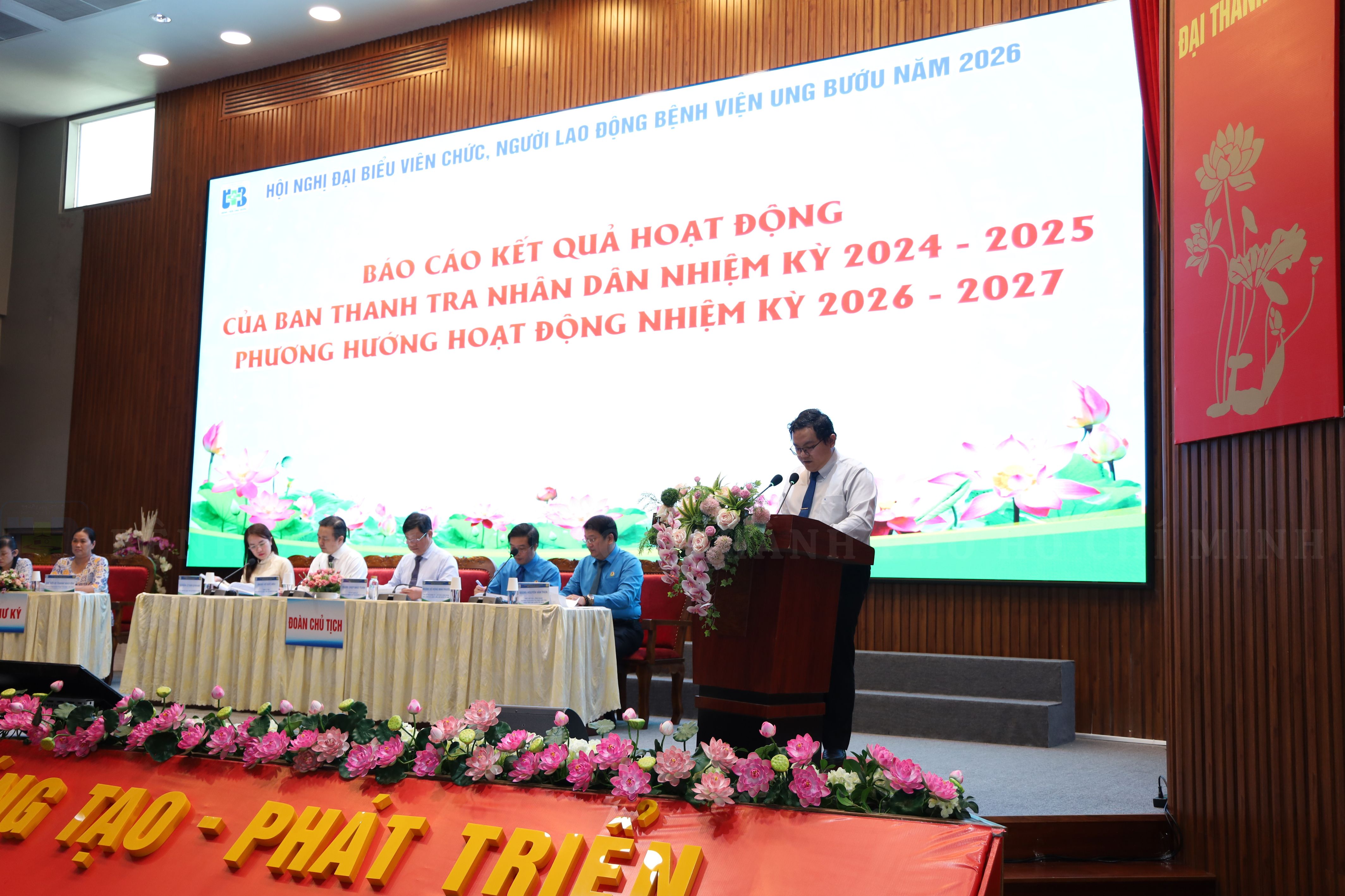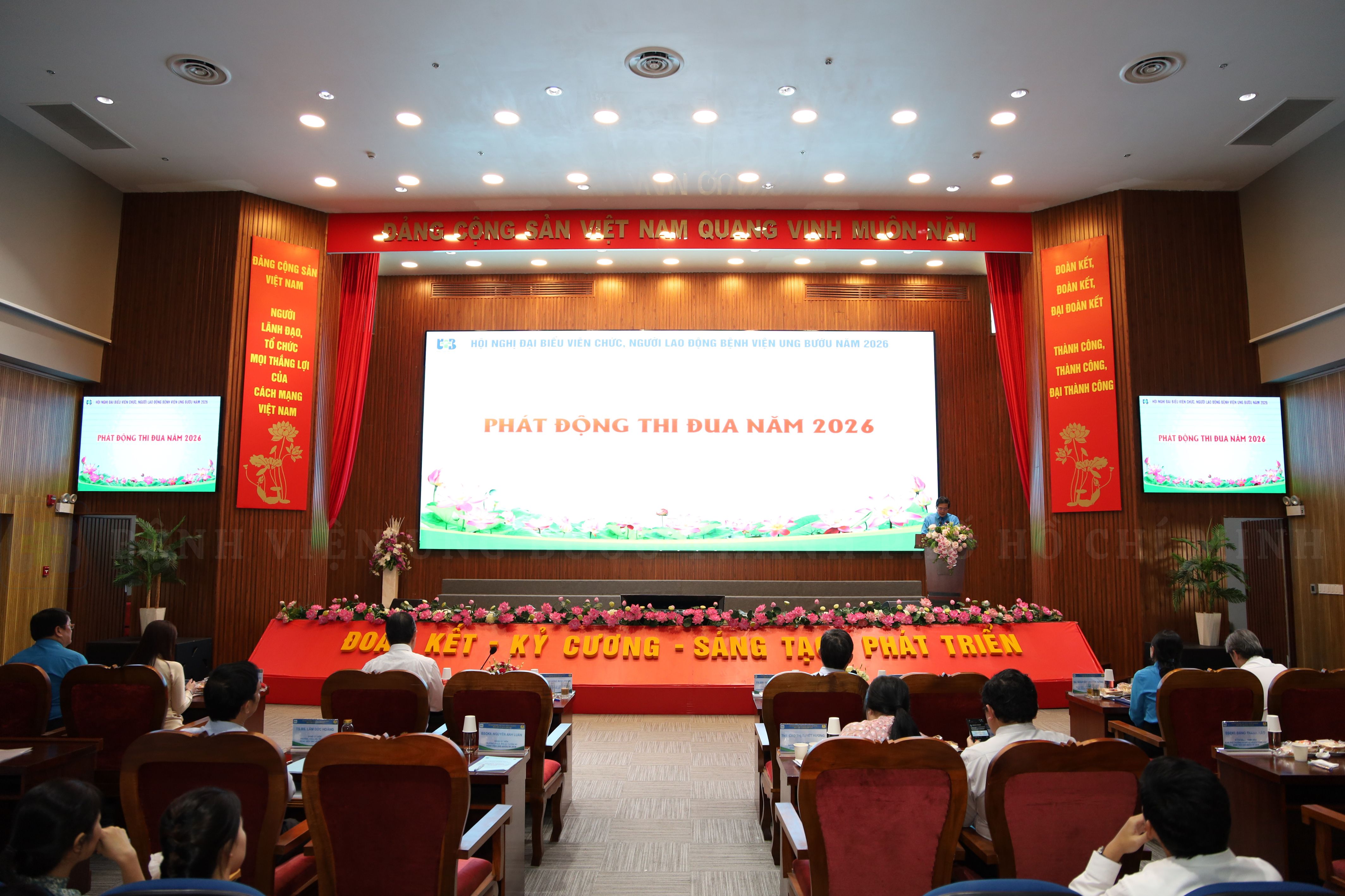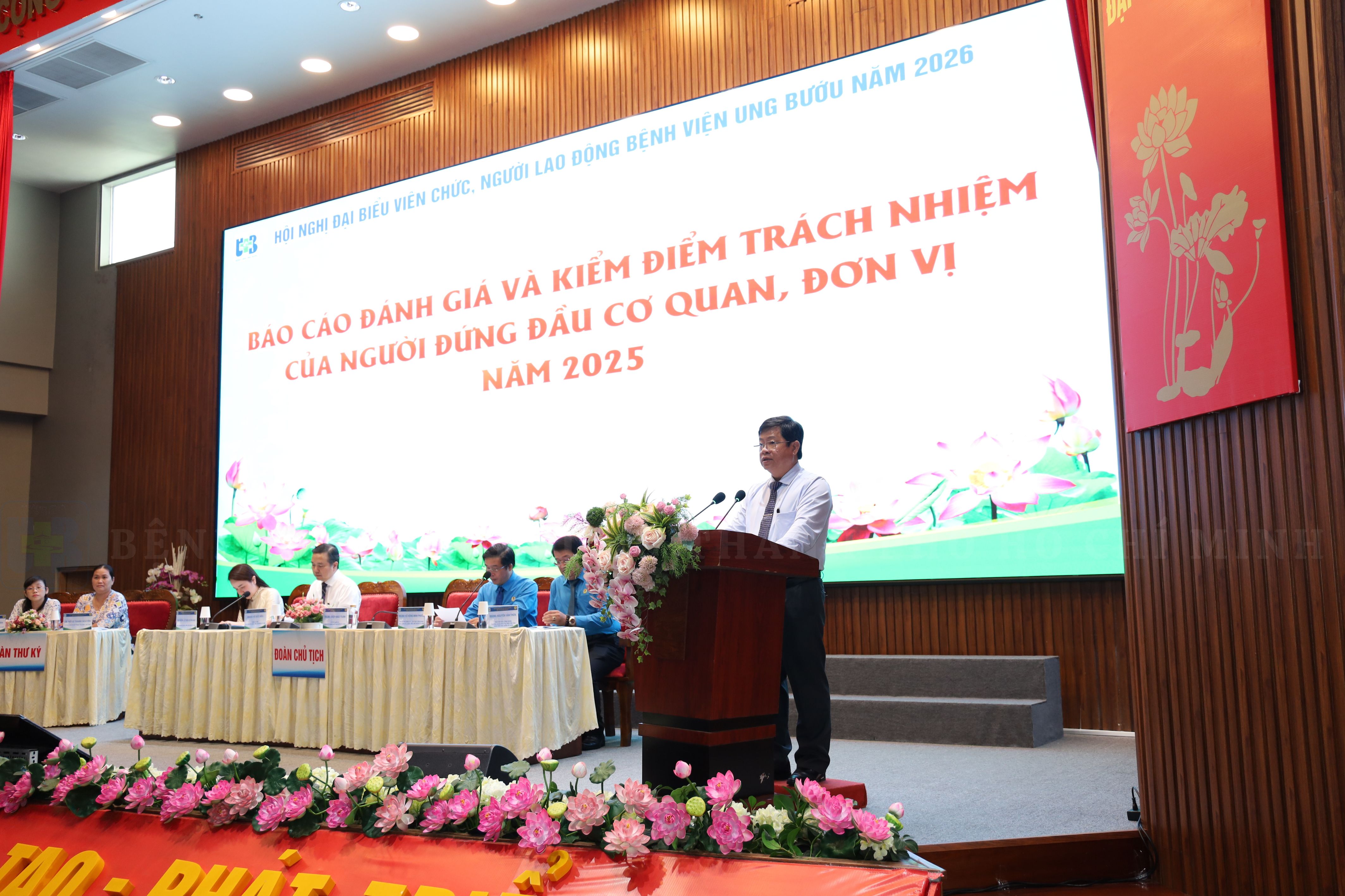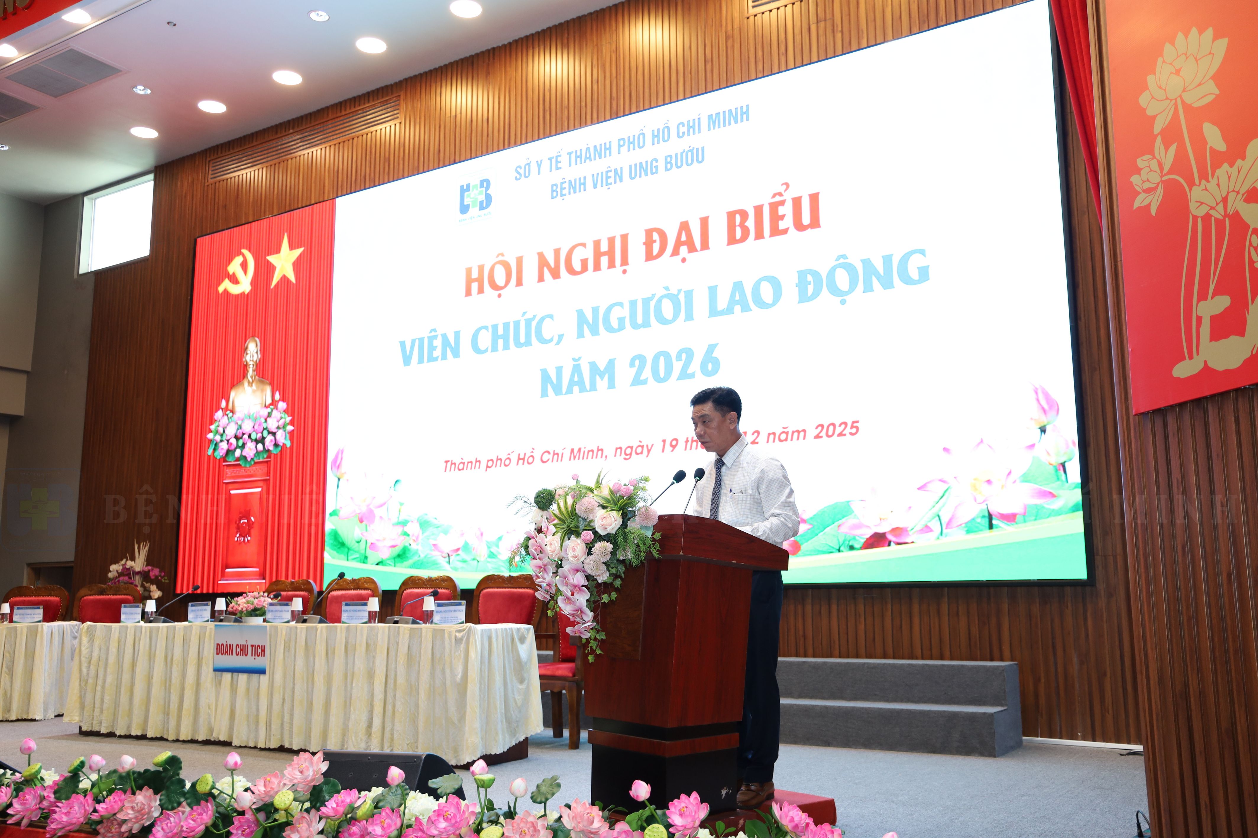 Sáng ngày 19/12/2025, Bệnh viện Ung Bướu TP Hồ Chí Minh tổ chức Hội nghị đại biểu viên chức, người lao động năm 2026 nhằm tổng kết hoạt động năm 2025, phát huy dân chủ cơ sở và thống nhất phương hướng, nhiệm vụ trọng tâm trong năm tới.