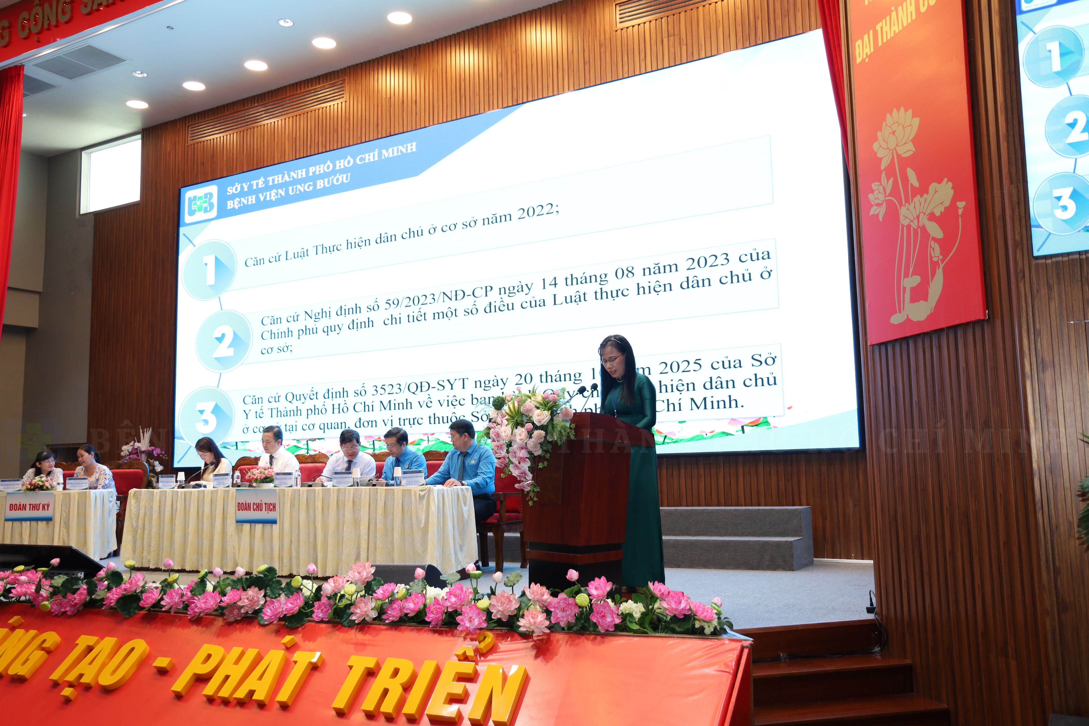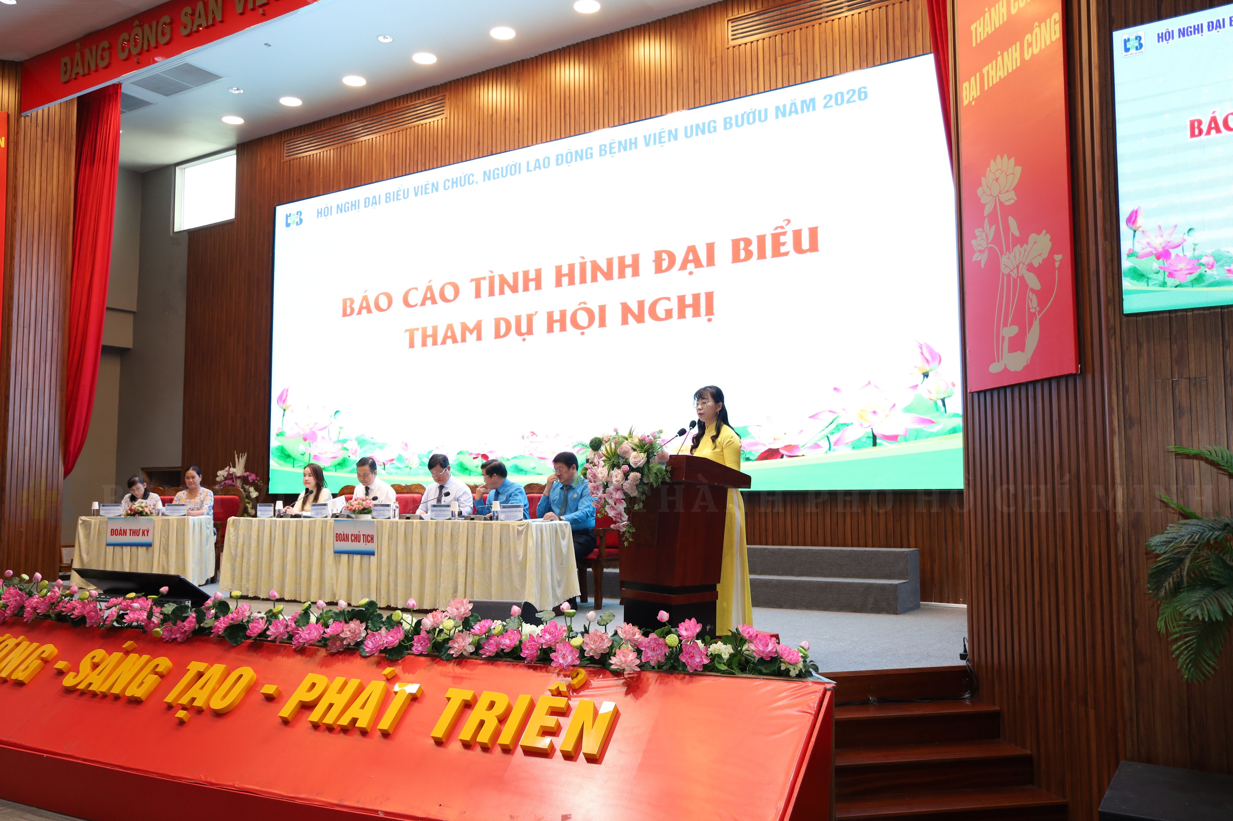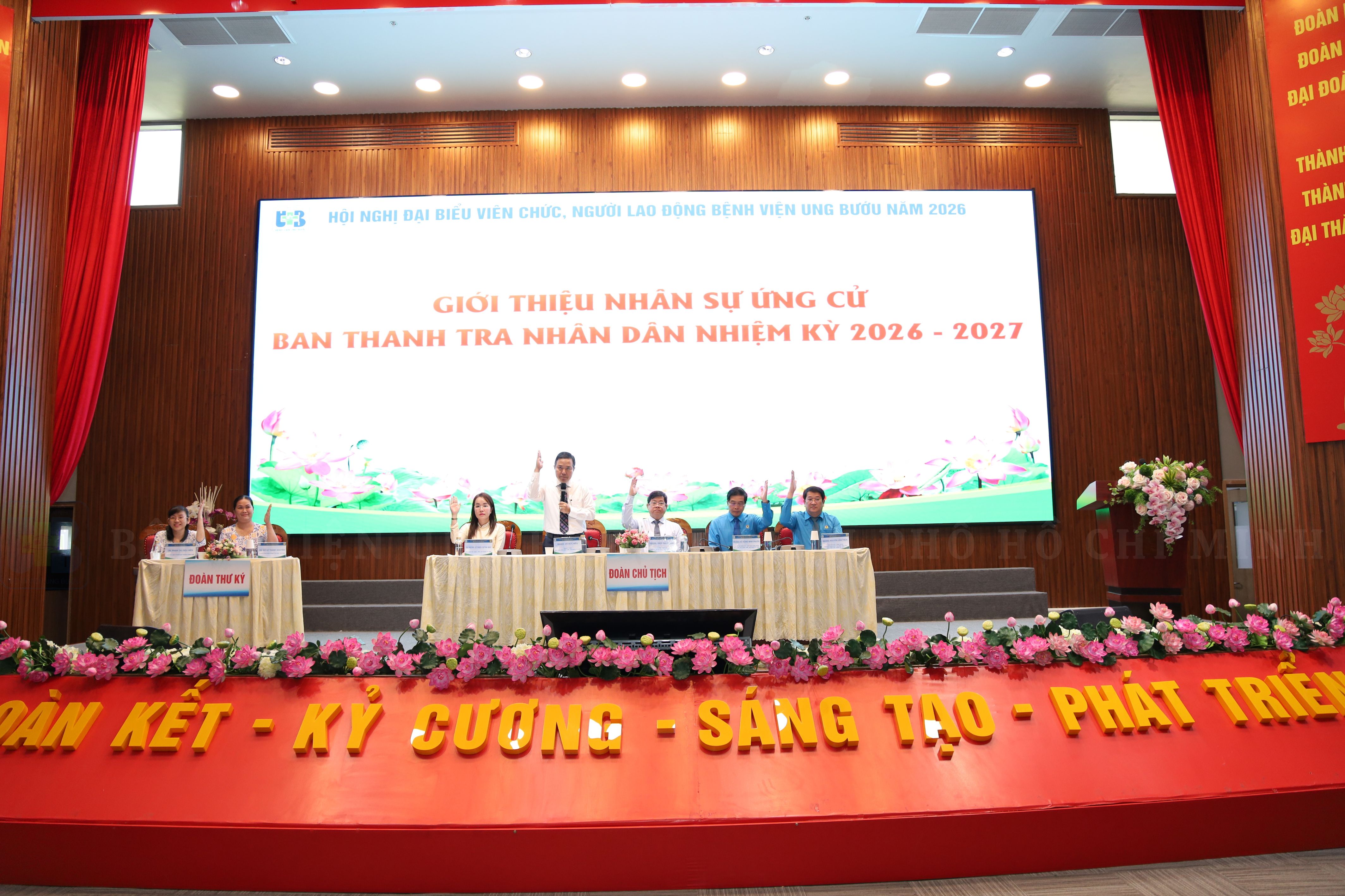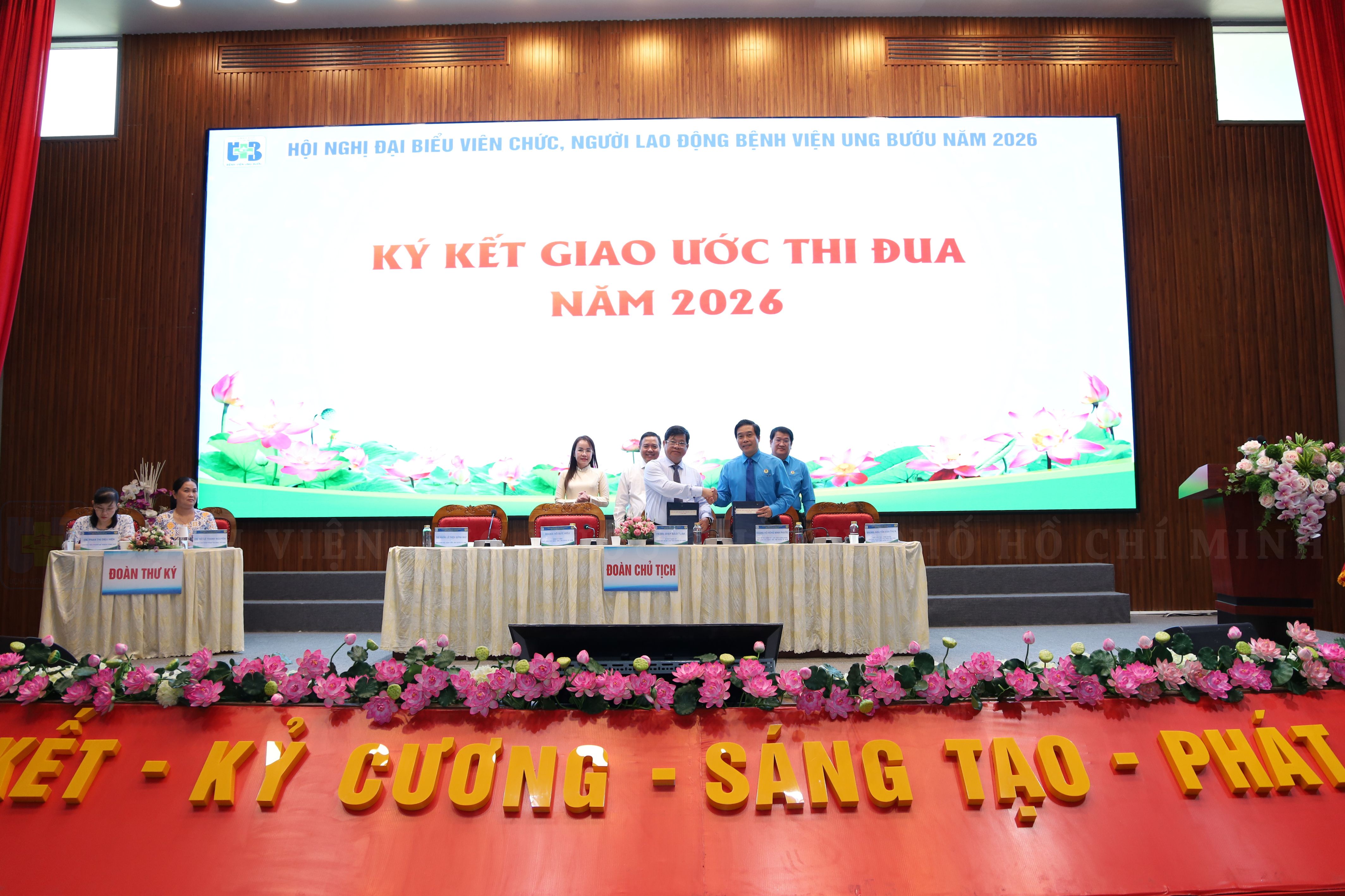 Sáng ngày 19/12/2025, Bệnh viện Ung Bướu TP Hồ Chí Minh tổ chức Hội nghị đại biểu viên chức, người lao động năm 2026 nhằm tổng kết hoạt động năm 2025, phát huy dân chủ cơ sở và thống nhất phương hướng, nhiệm vụ trọng tâm trong năm tới.