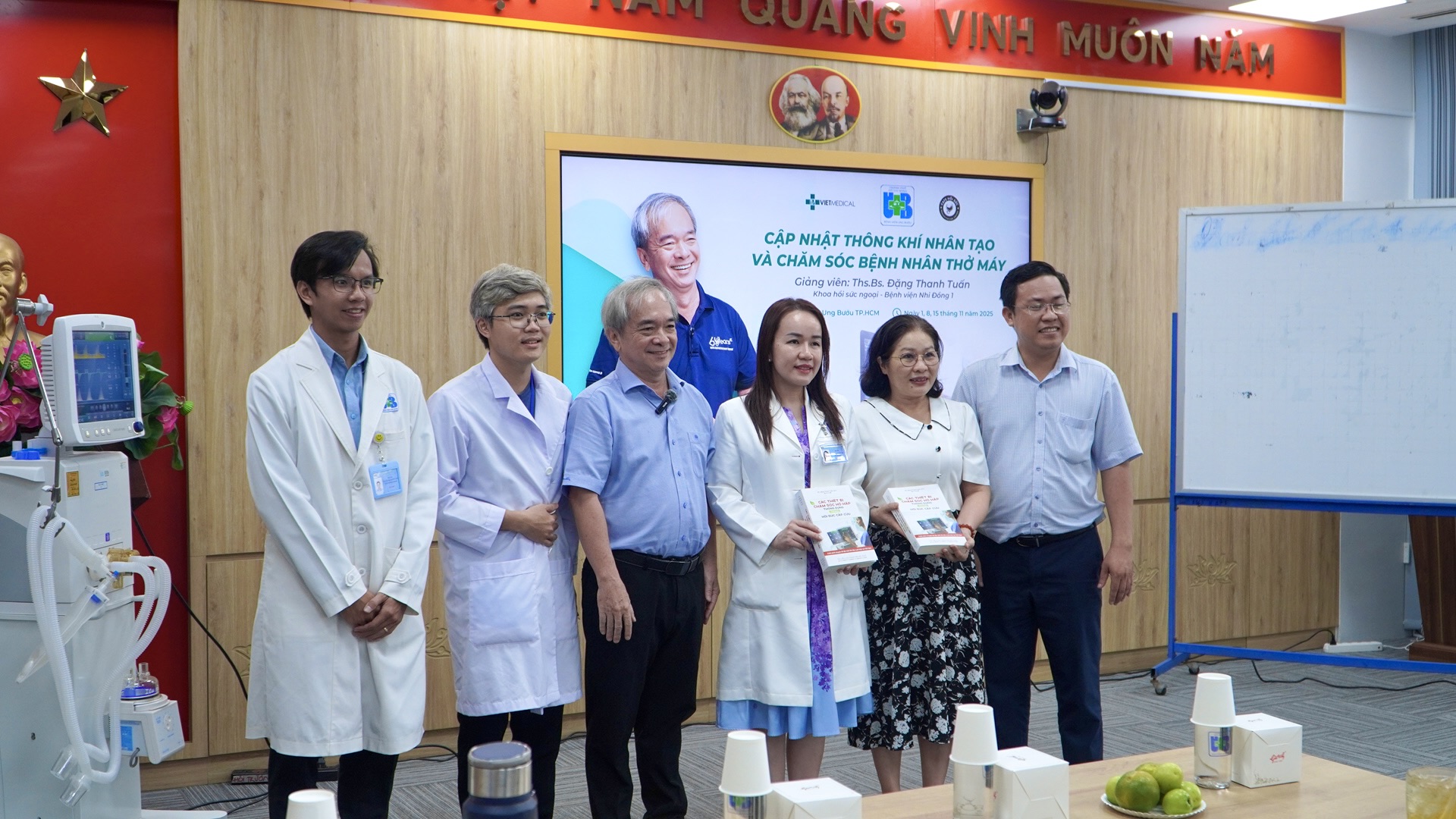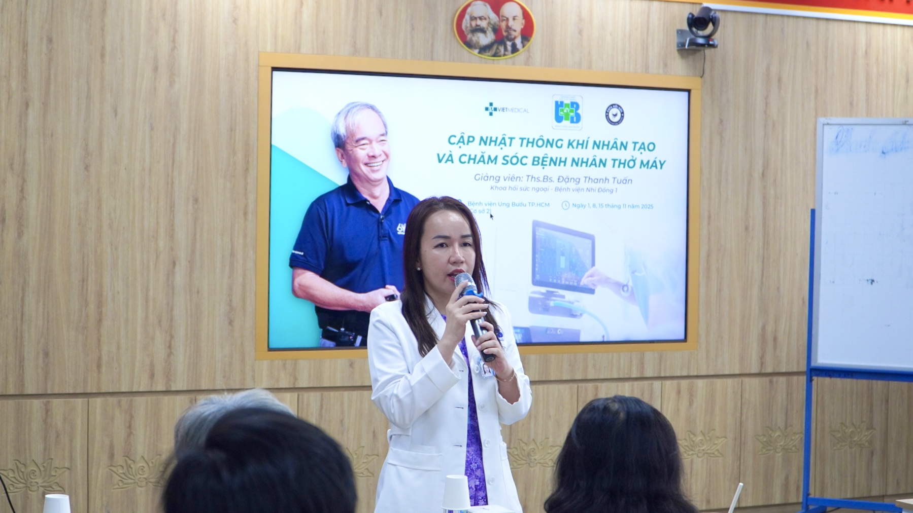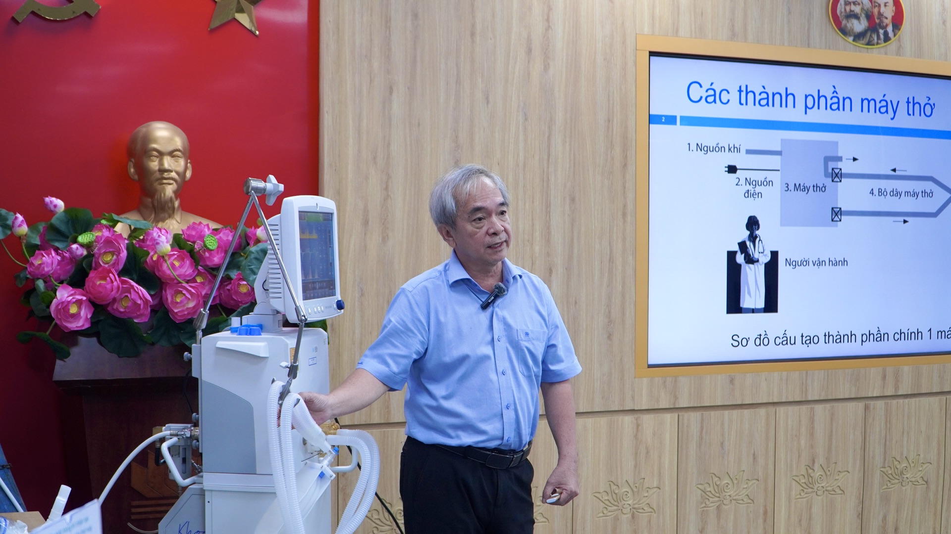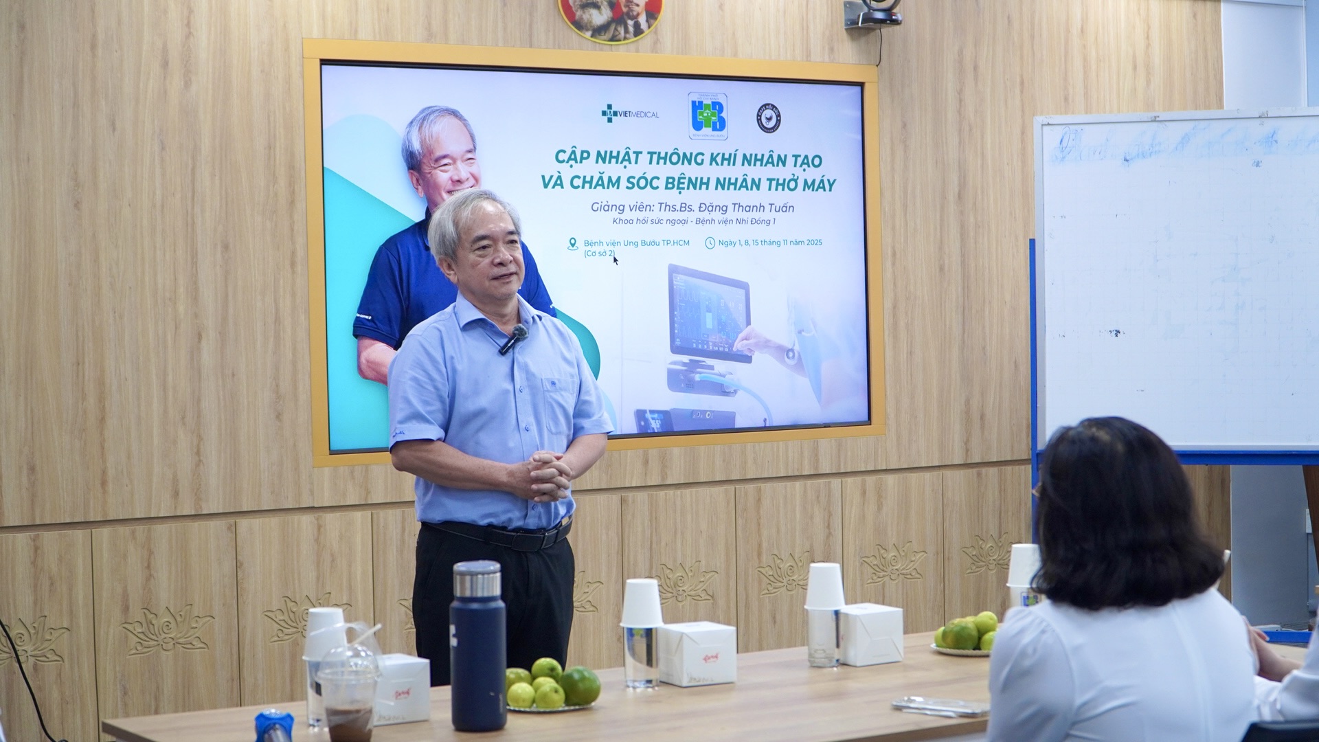 ThS.BS. Đặng Thanh Tuấn – Khoa Hồi sức ngoại, Bệnh viện nhi đồng 1 trực tiếp hướng dẫn. Tại lớp học, học viên được cập nhật các kiến thức trọng tâm về kỹ thuật thiết lập chế độ thở máy, nhận định và tối ưu hóa thông số thở máy theo từng tình huống lâm sàng, đồng thời tiếp cận các khuyến cáo mới nhất trong chăm sóc hô hấp cho người bệnh ung thư.