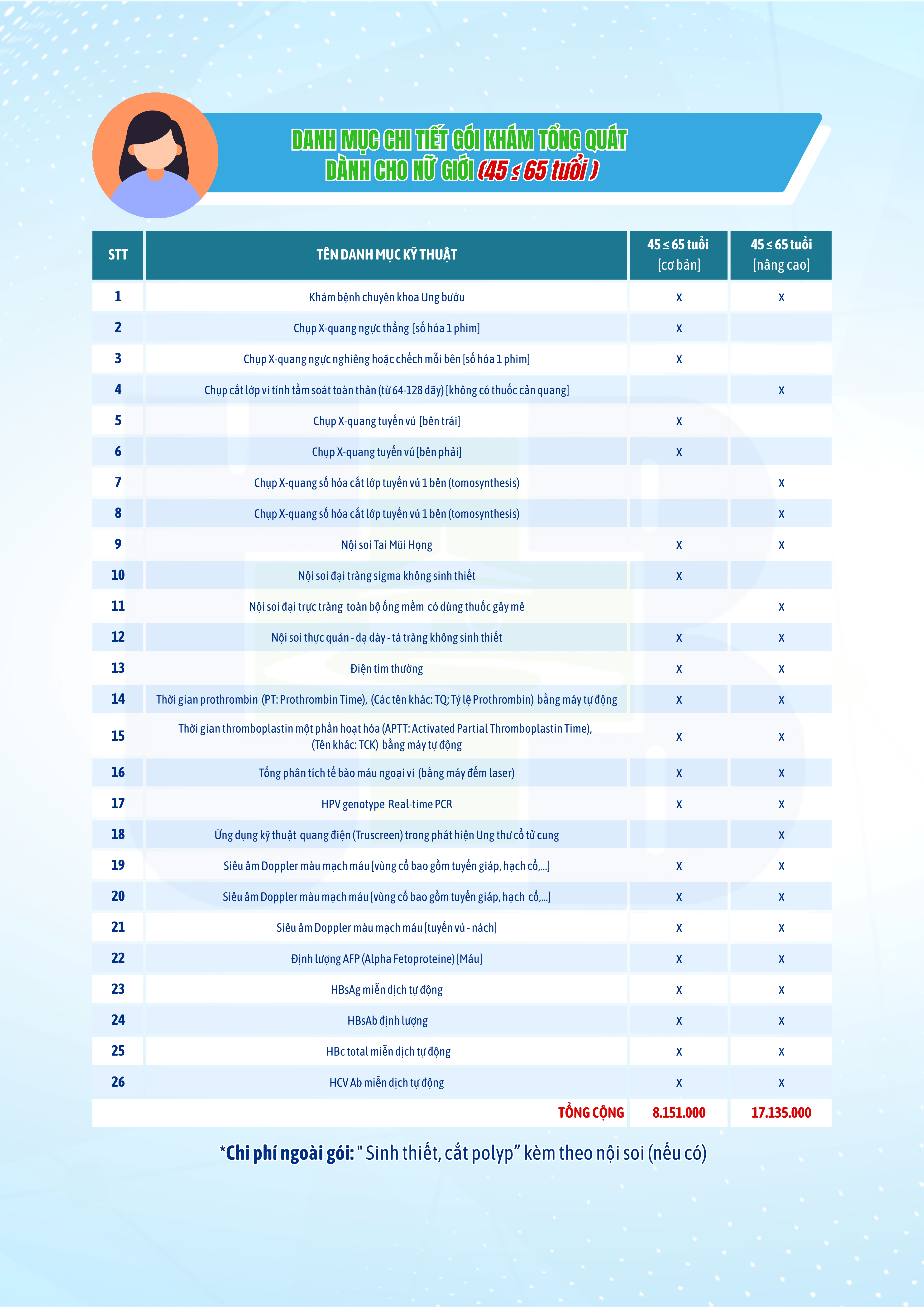 Tổng Quát Cho Nữ Giới 45 ≤ 65 Tuổi