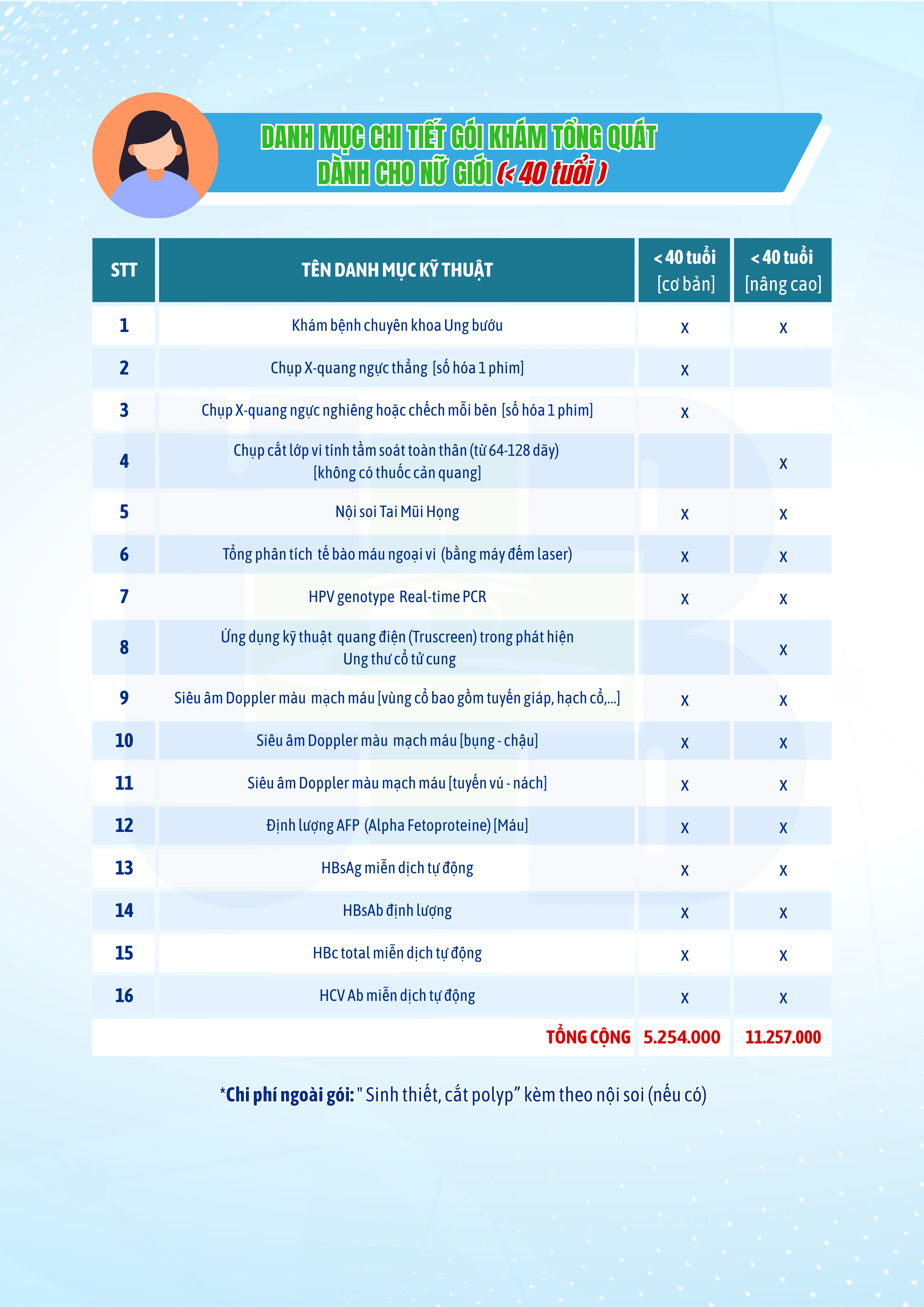 Tổng Quát Cho Nữ Giới < 40 Tuổi
