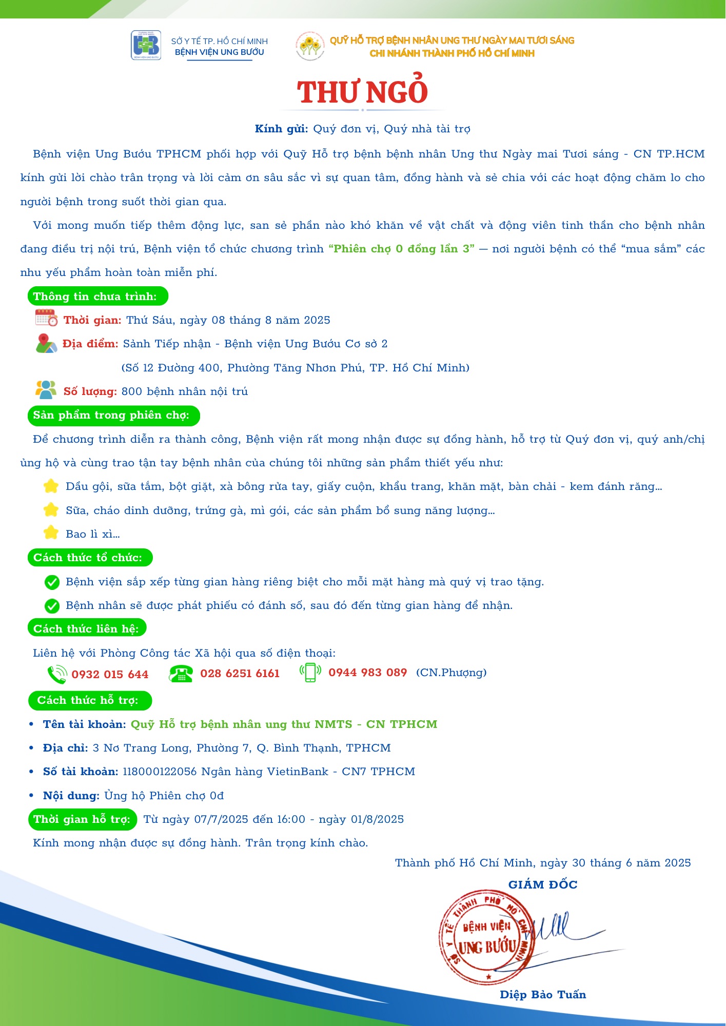 SẺ CHIA YÊU THƯƠNG – ĐỒNG HÀNH CÙNG PHIÊN CHỢ 0 ĐỒNG Bệnh viện Ung [...]