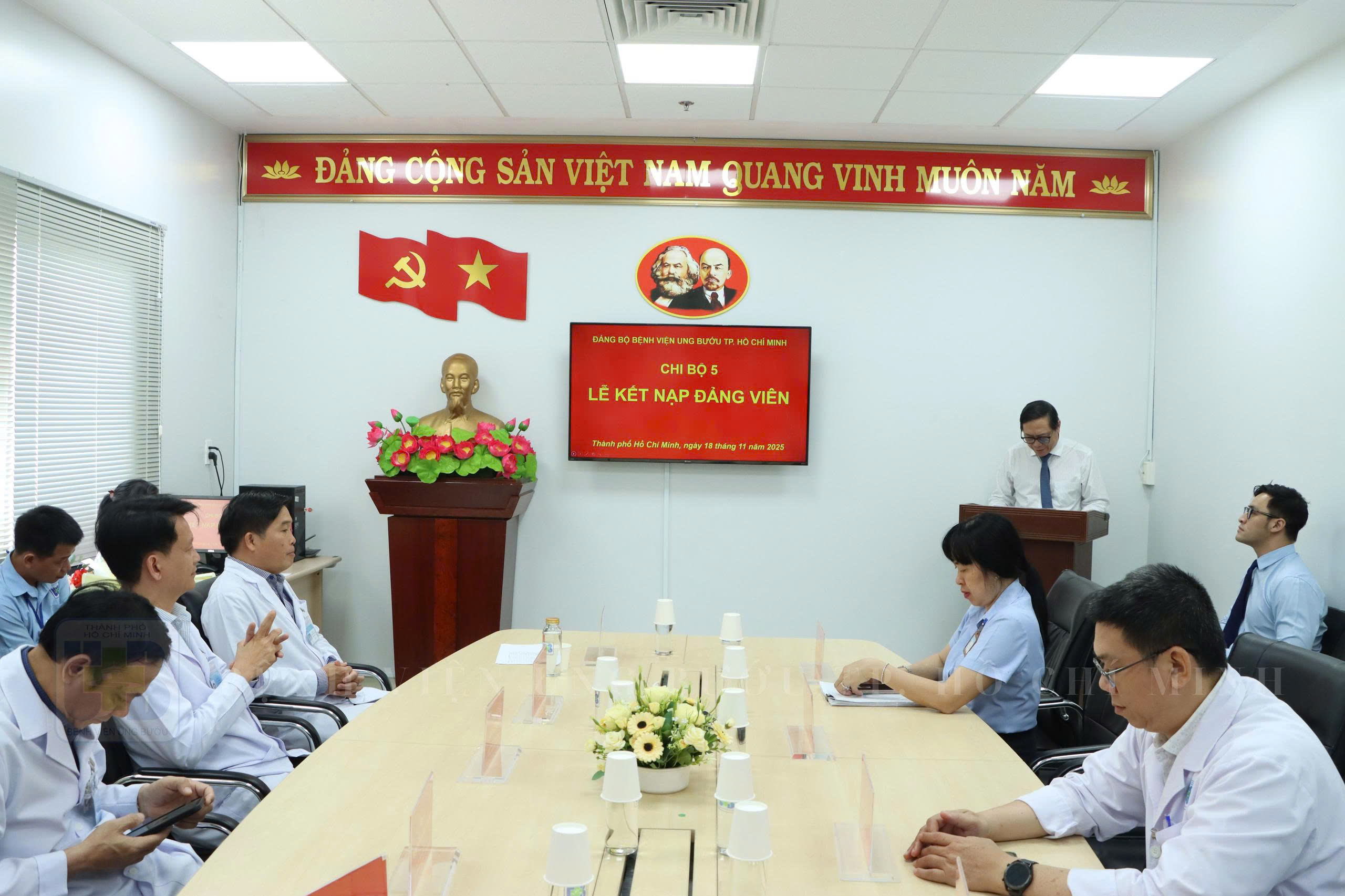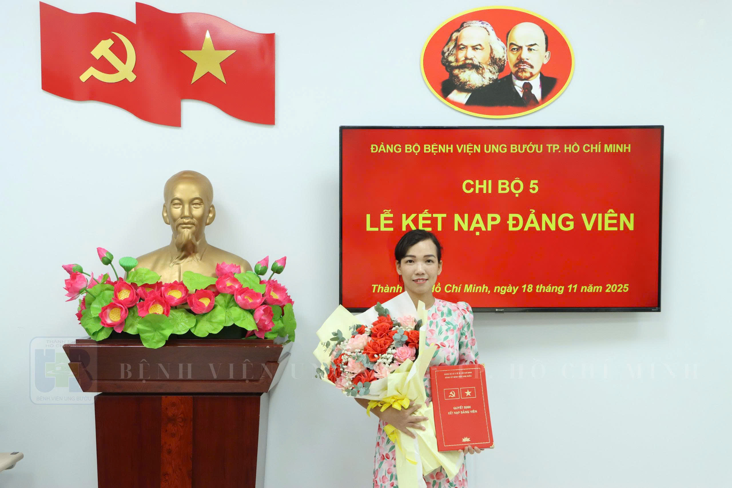 Sáng ngày 18/11/2025, Đảng bộ Bệnh viện Ung Bướu TP.HCM tổ chức Lễ kết nạp Đảng viên cho quần chúng ưu tú đồng chí Trương Thị Oanh – Khoa Nội Huyết học, Chi bộ 5.