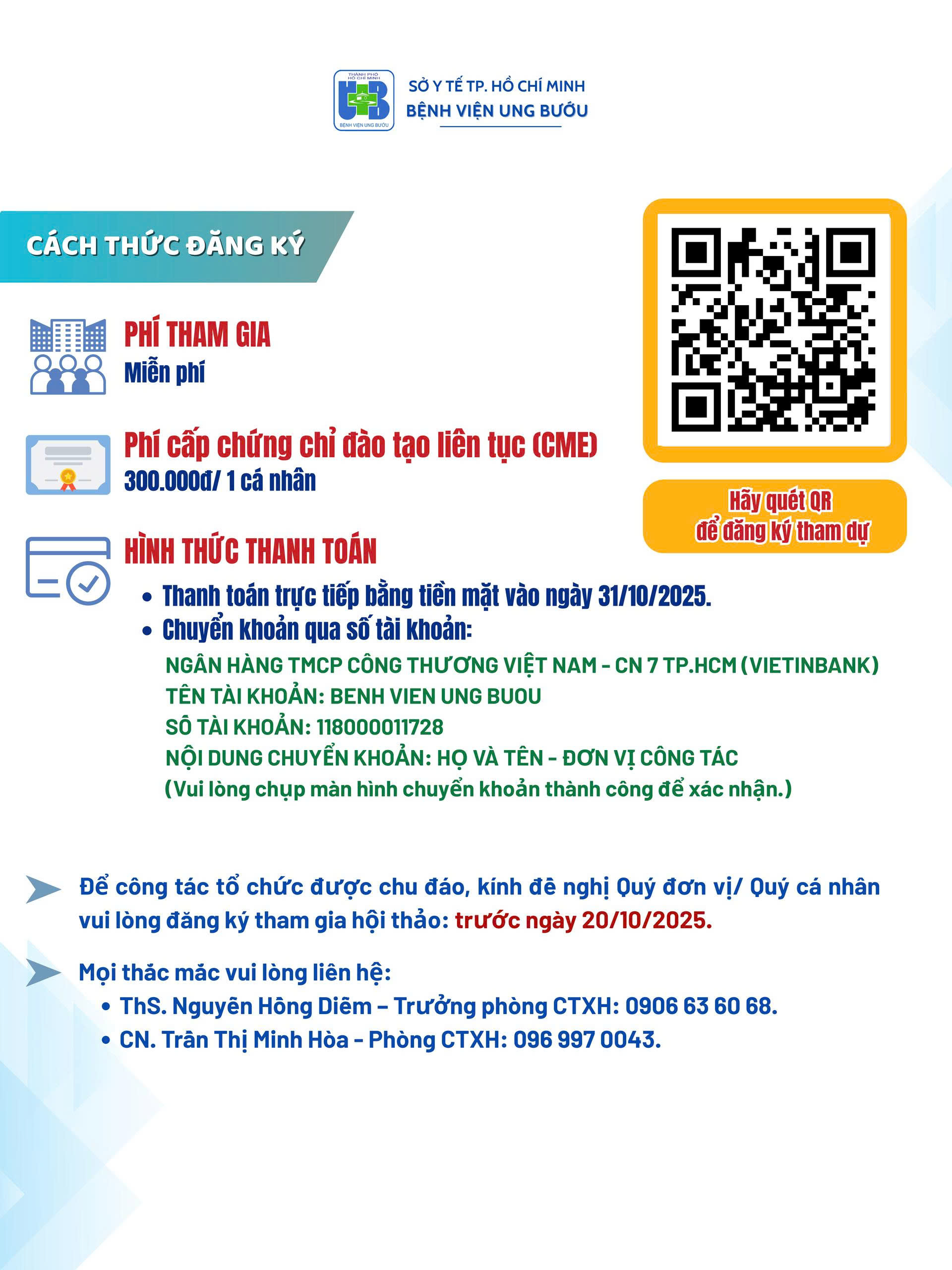 Địa điểm: Hội trường C – Bệnh viện Ung Bướu TP.HCM (Cơ sở 2)