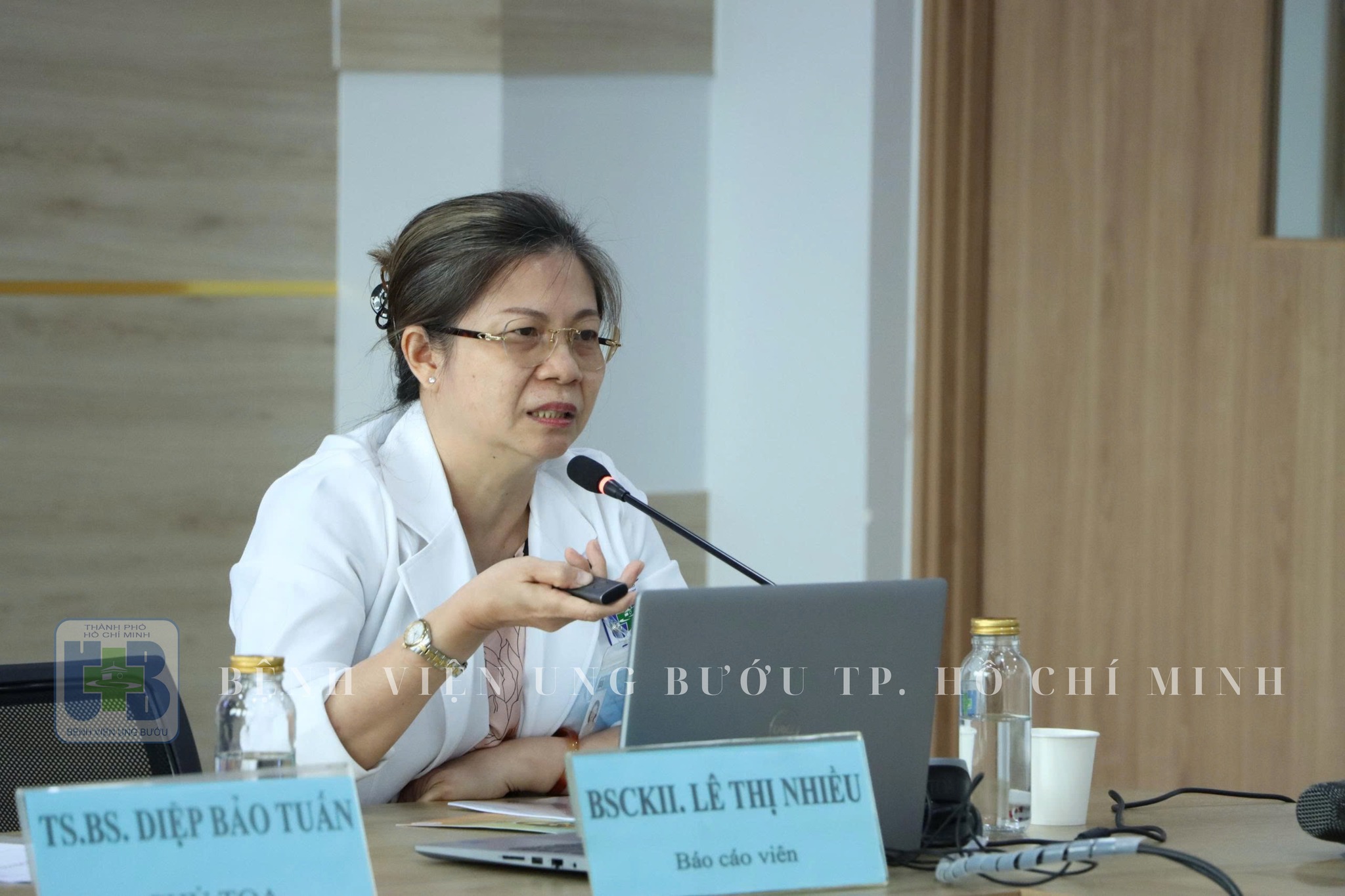2. BSCK2. Lê Thị Nhiều – Phó trưởng khoa Nội Phụ khoa, Phổi – chia sẻ hiệu quả của Afatinib trong điều trị bước một cho bệnh nhân ung thư phổi không tế bào nhỏ có đột biến EGFR, dựa trên dữ liệu thực tế từ 343 bệnh nhân tại 9 trung tâm ung bướu lớn trên toàn quốc; đặc biệt trên nhóm bệnh nhân có di căn não từ đầu – một thách thức lớn trong điều trị ung thư phổi. Các trường hợp lâm sàng minh họa trong báo cáo đã cho thấy hình ảnh đáp ứng một phần sau nhiều tháng điều trị, ngay cả khi có nhiều tổn thương ở gan, phổi và não. Độc tính của thuốc ở mức độ nhẹ, dễ kiểm soát, không ghi nhận biến cố nghiêm trọng mới.