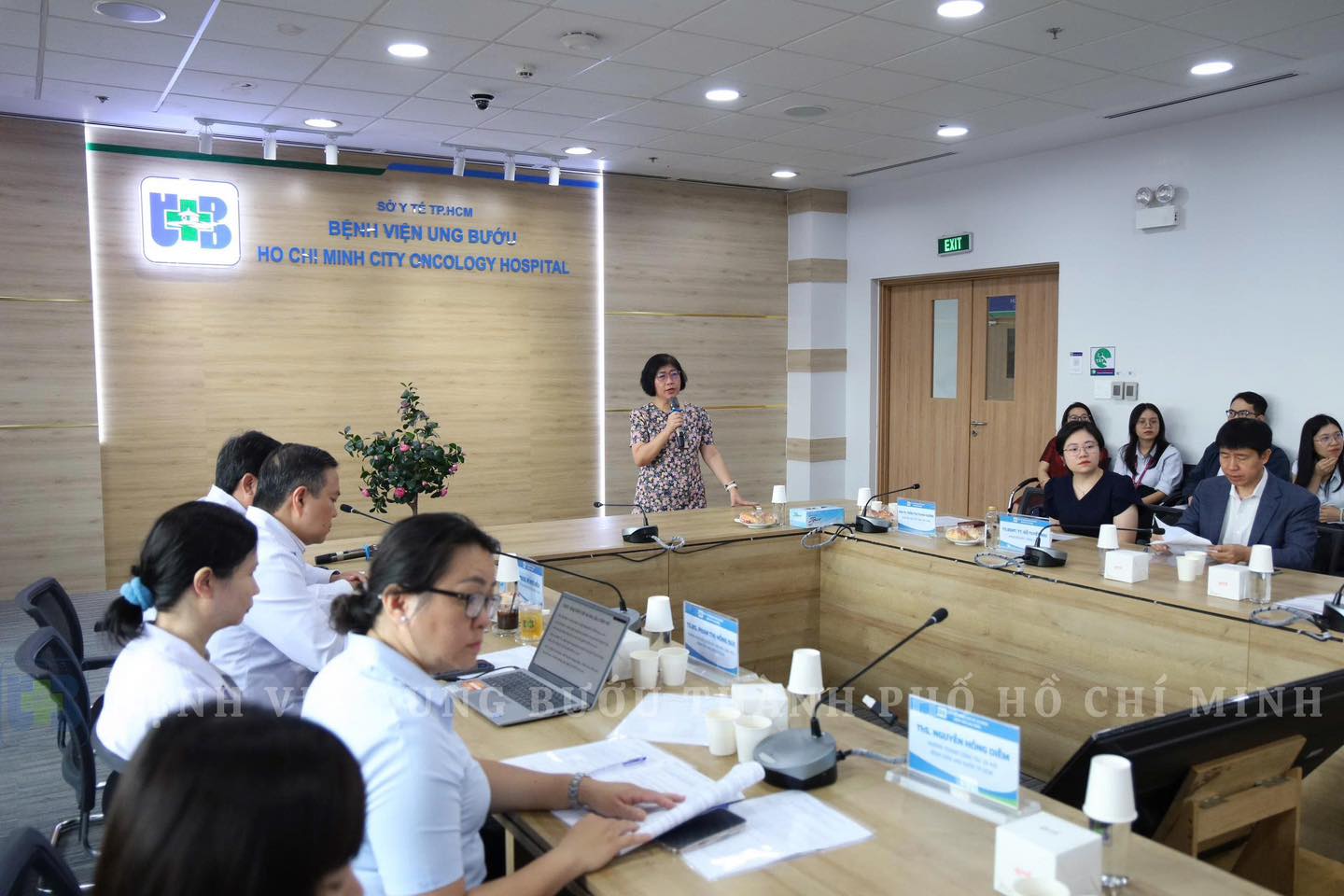 TS.BS. Diệp Bảo Tuấn – Giám đốc Bệnh viện Ung Bướu TP.HCM chủ trì, với sự tham dự của BSCKII. Võ Đức Hiếu – Phó Giám đốc Bệnh viện Ung Bướu TP.HCM, và sự chia sẻ của các báo cáo viên: