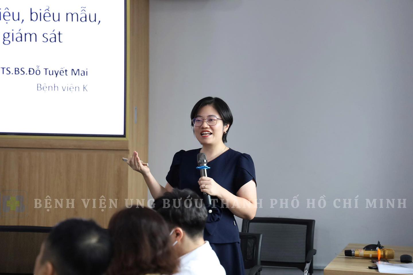 TS.BS. Đỗ Tuyết Mai hướng dẫn tập trung vào việc vận dụng các tài liệu hỗ trợ người bệnh, công cụ sàng lọc tâm lý – giấc ngủ, kỹ năng xây dựng kế hoạch chăm sóc định kỳ và làm việc nhóm trong môi trường đa ngành. Hoạt động này giúp đội ngũ y tế tiếp cận trực tiếp và nâng cao khả năng ứng dụng mô hình chăm sóc cá thể hóa một cách linh hoạt và hiệu quả, phù hợp với từng trường hợp cụ thể.