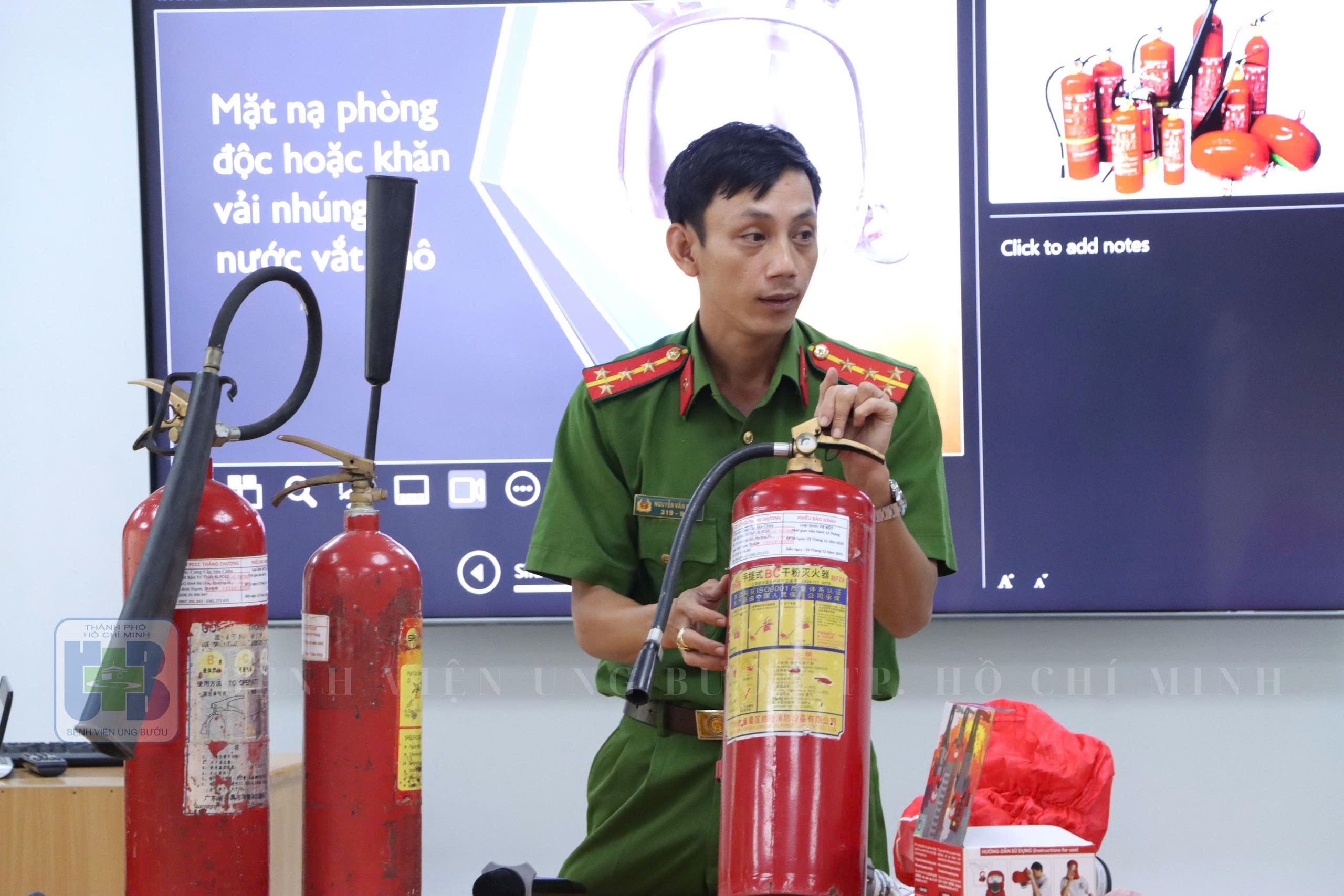 Buổi tập huấn do Đại úy Nguyễn Văn Chiến – Phòng Cảnh sát Phòng cháy chữa cháy và Cứu nạn cứu hộ, Công an TP.HCM trực tiếp hướng dẫn. Nội dung tập trung vào cập nhật kiến thức chuyên môn, kỹ năng sử dụng thiết bị chữa cháy, xử lý tình huống khẩn cấp và nâng cao khả năng phản ứng thực tế.