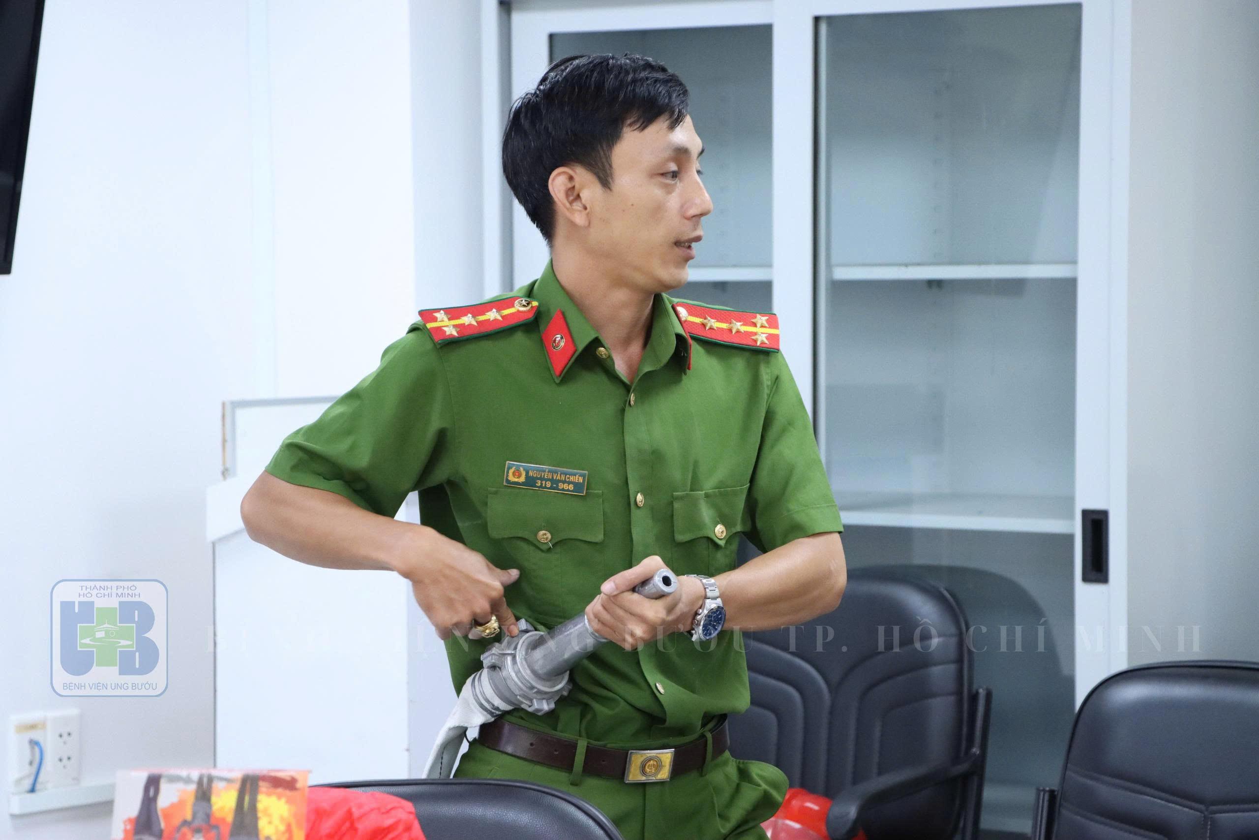 Buổi tập huấn do Đại úy Nguyễn Văn Chiến – Phòng Cảnh sát Phòng cháy chữa cháy và Cứu nạn cứu hộ, Công an TP.HCM trực tiếp hướng dẫn. Nội dung tập trung vào cập nhật kiến thức chuyên môn, kỹ năng sử dụng thiết bị chữa cháy, xử lý tình huống khẩn cấp và nâng cao khả năng phản ứng thực tế.
