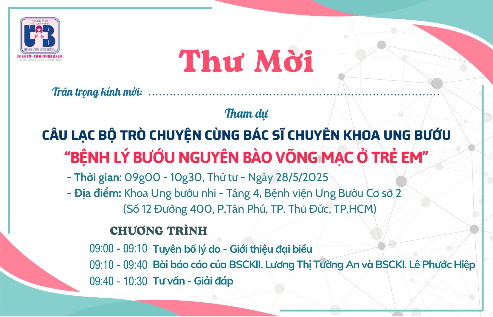 Địa điểm: Khoa Ung bướu nhi – Tầng 4, Bệnh viện Ung Bướu Cơ sở 2