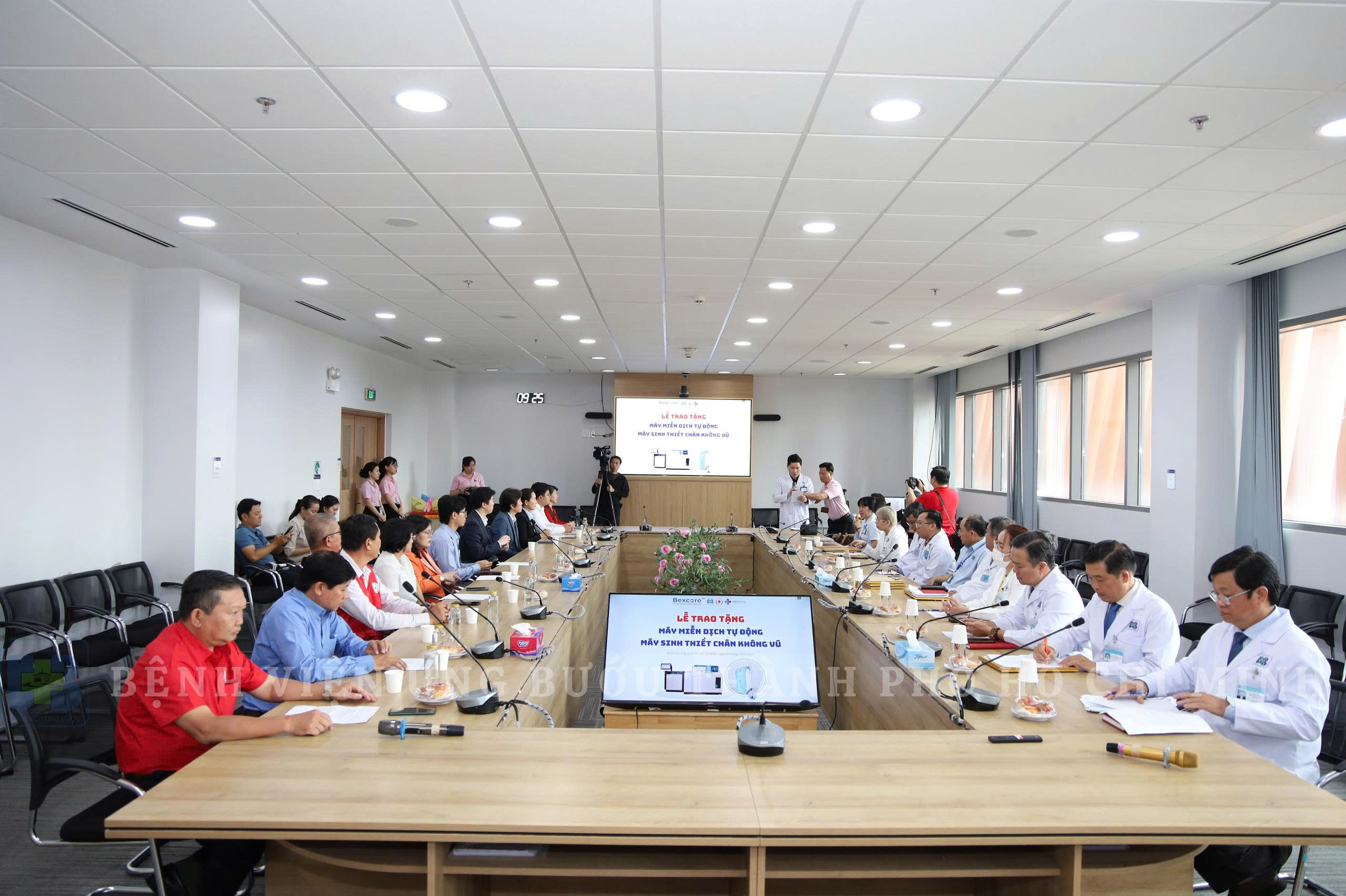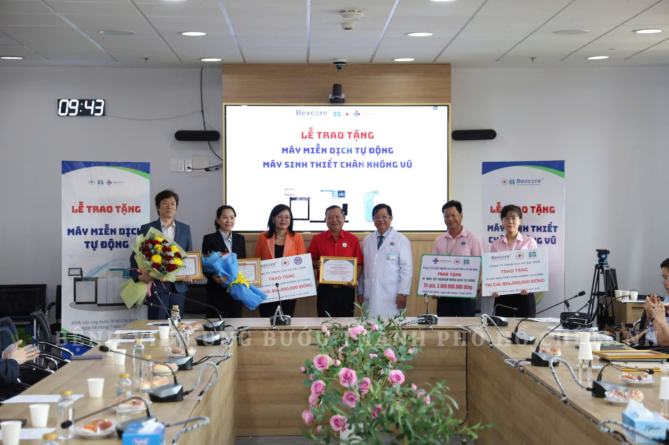 Sáng 8/7/2025, Bệnh viện Ung Bướu TP.HCM tiếp nhận Máy sinh thiết chân không vú và Máy miễn dịch tự động do Hội Chữ thập đỏ TP.HCM trao tặng.