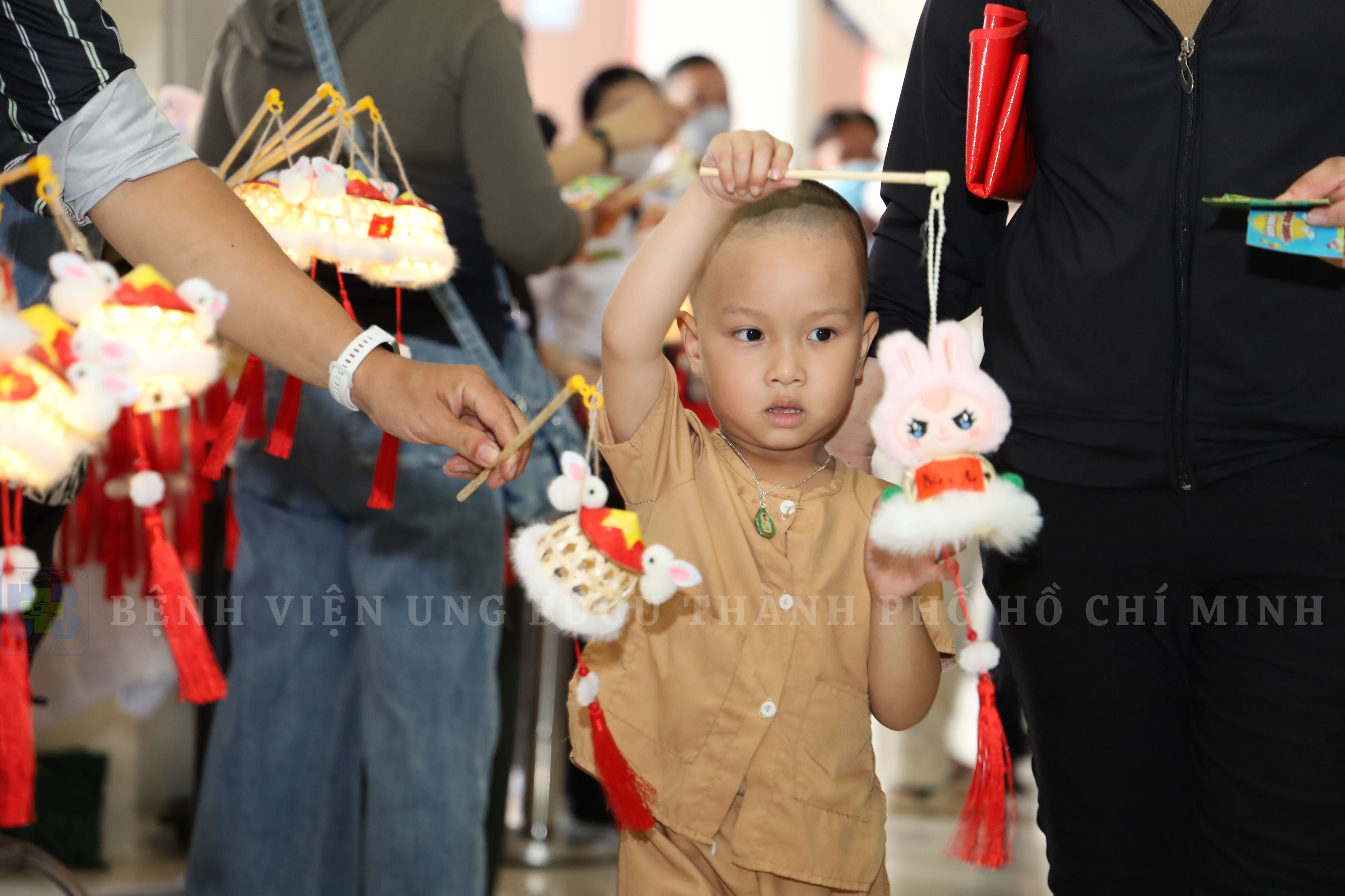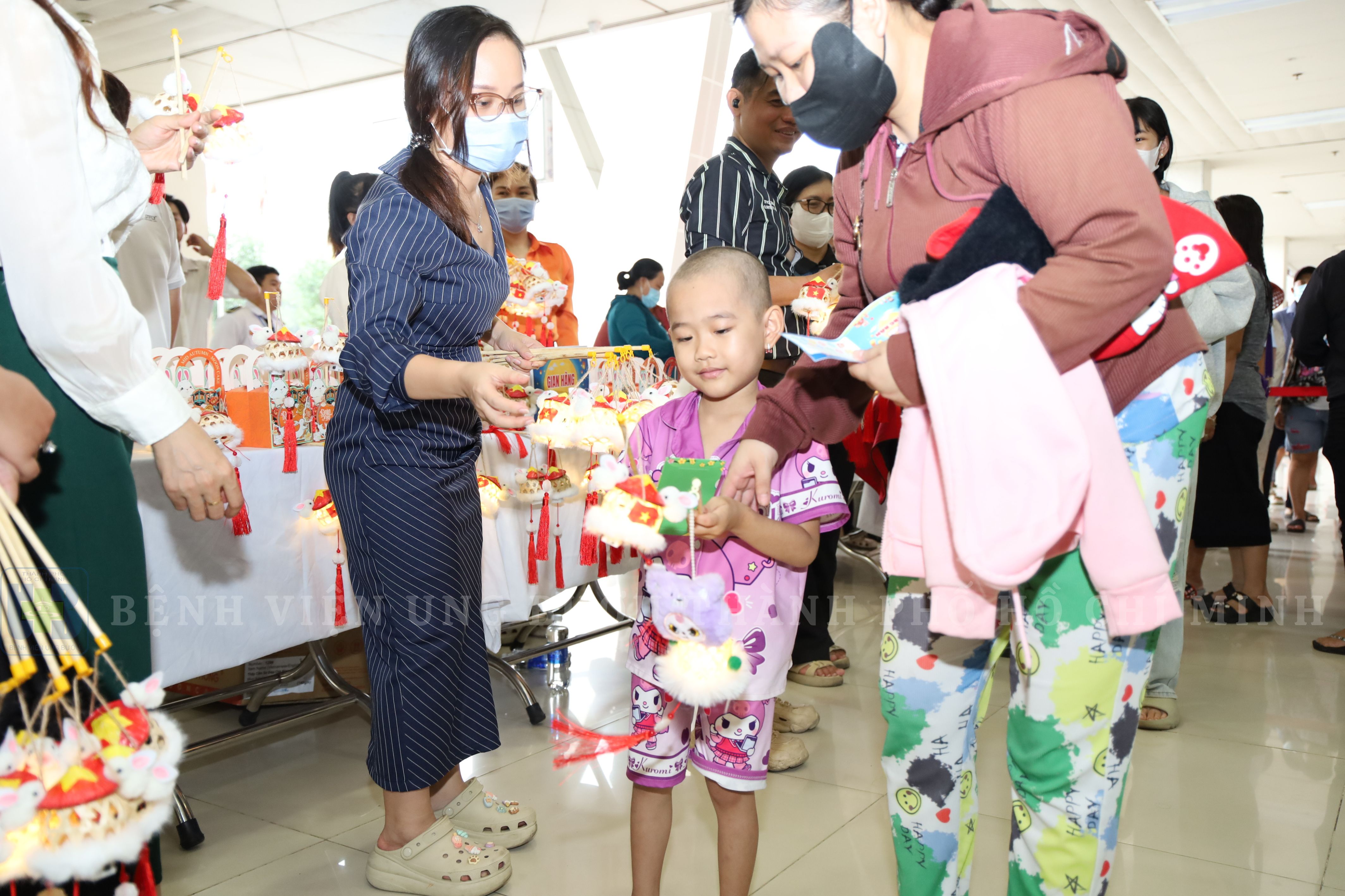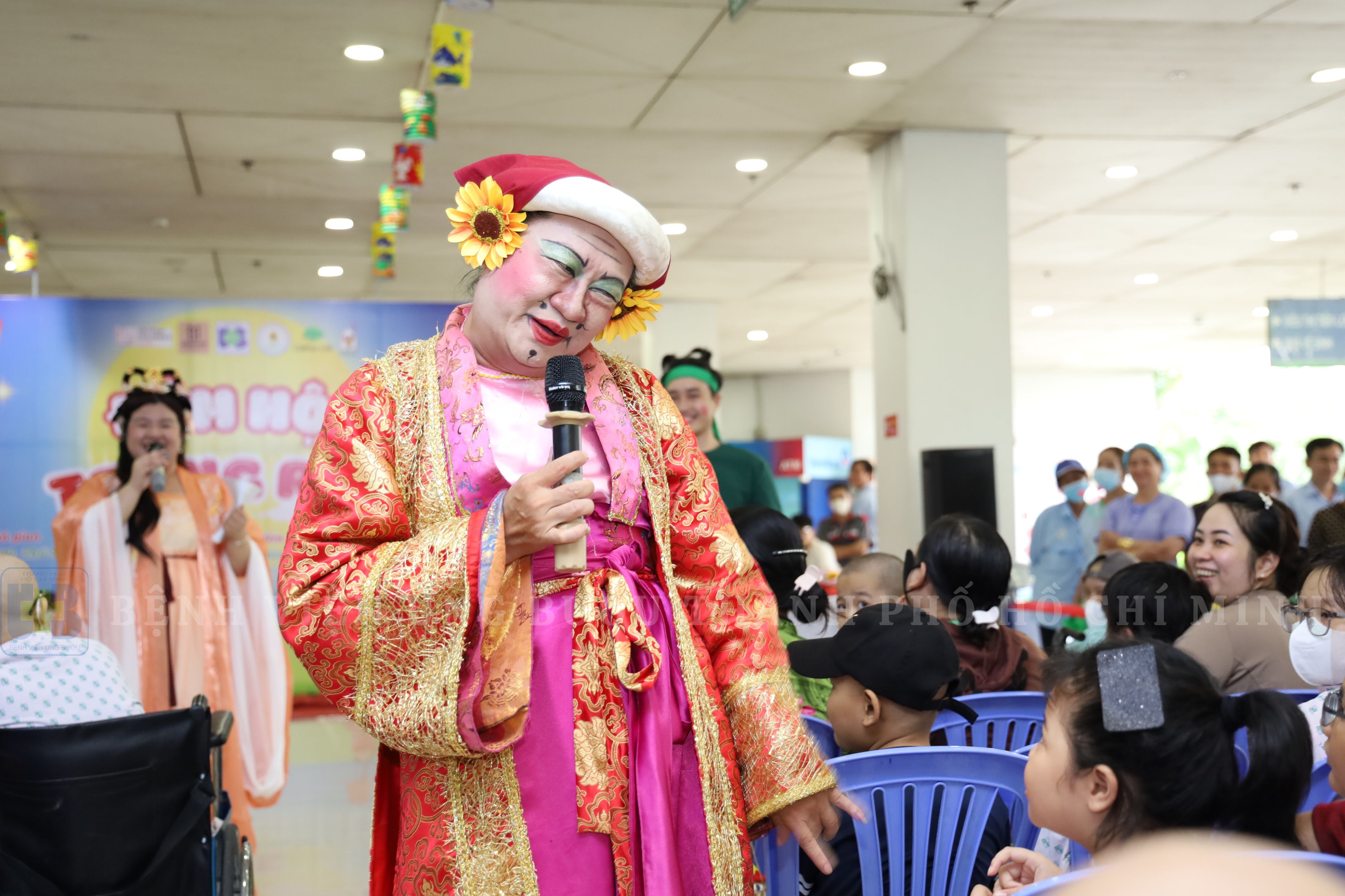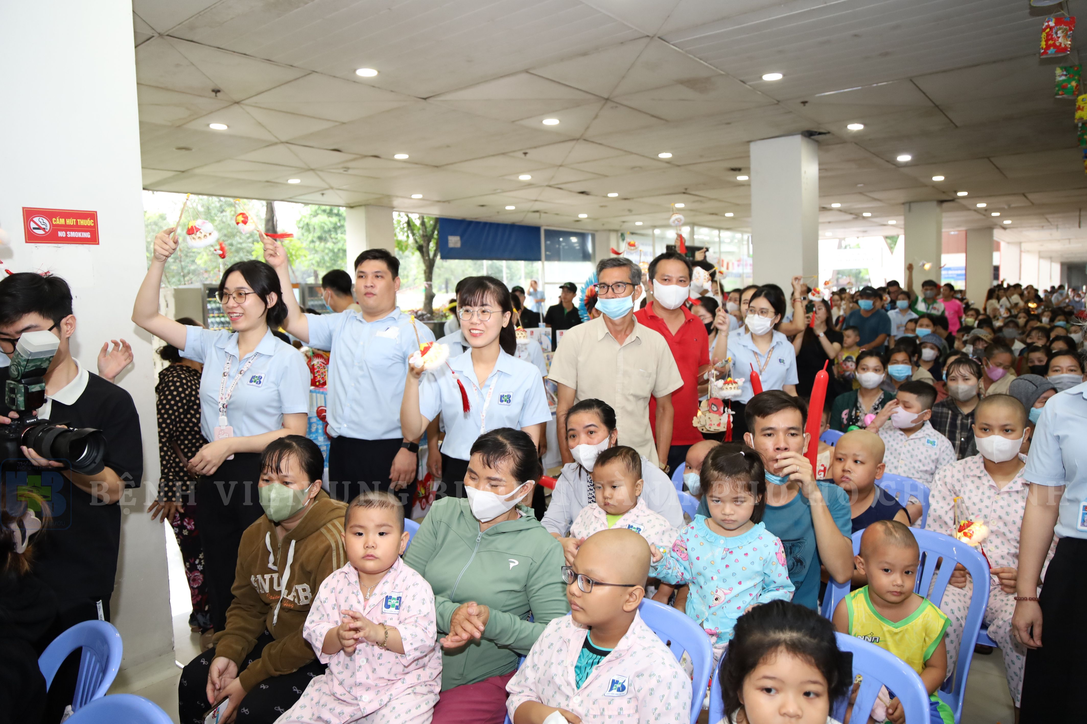 Ngay từ những phút đầu, các em hòa mình vào không khí lễ hội với chuỗi hoạt động phù hợp lứa tuổi: phá cỗ, múa lân, ảo thuật, văn nghệ thiếu nhi, rước đèn, chơi tò he, tô tượng và chụp ảnh cùng các nhân vật hoạt hình. Không chỉ là vui chơi, đó còn là những khoảnh khắc quý giá khi nụ cười trẻ thơ tạm xua dịu nỗi lo bệnh tật của các em và gia đình.