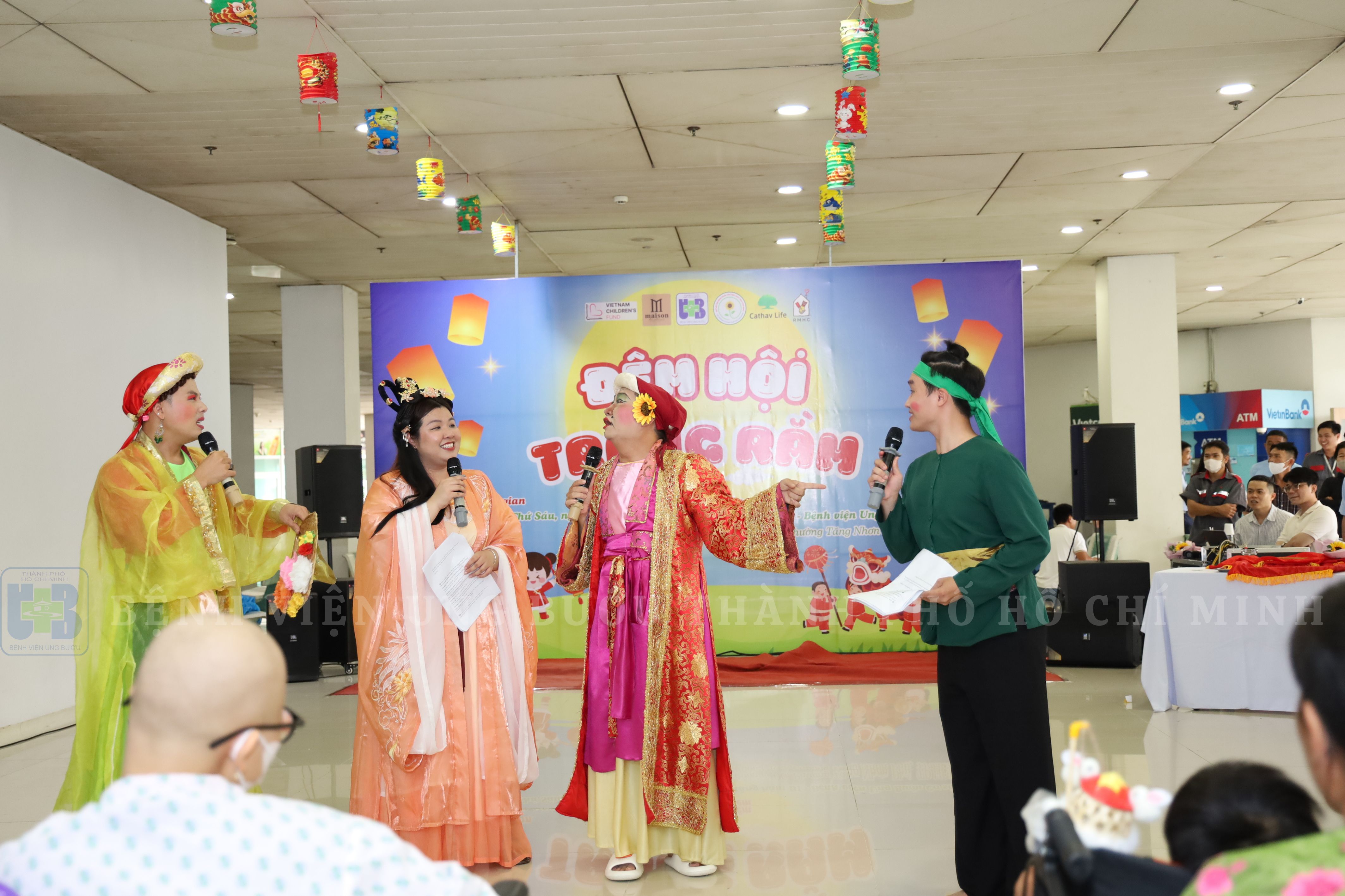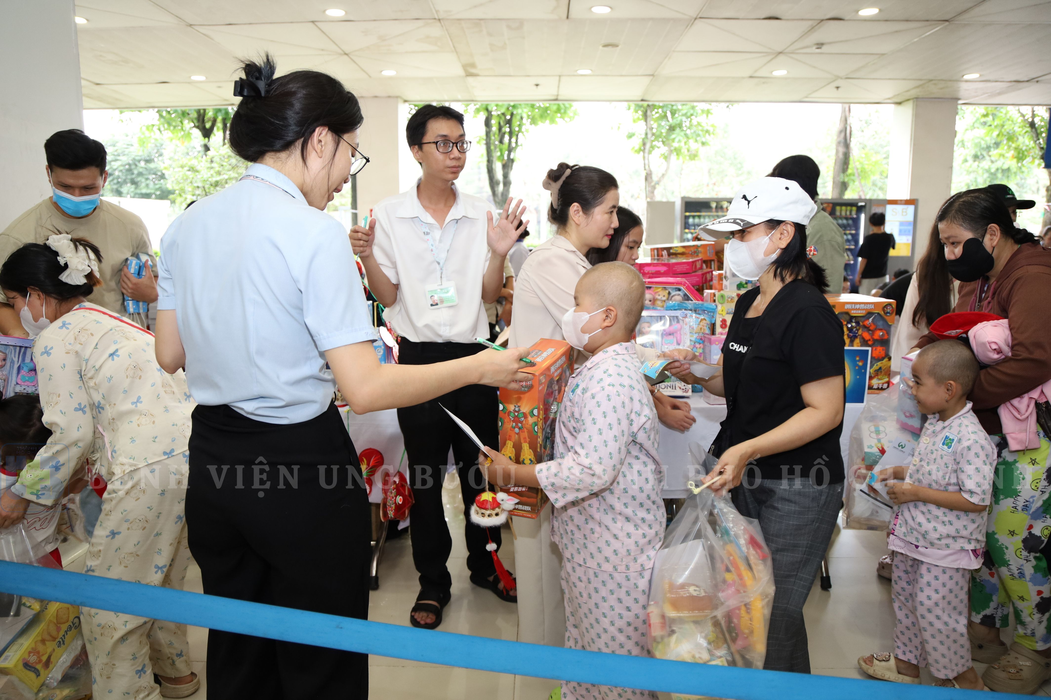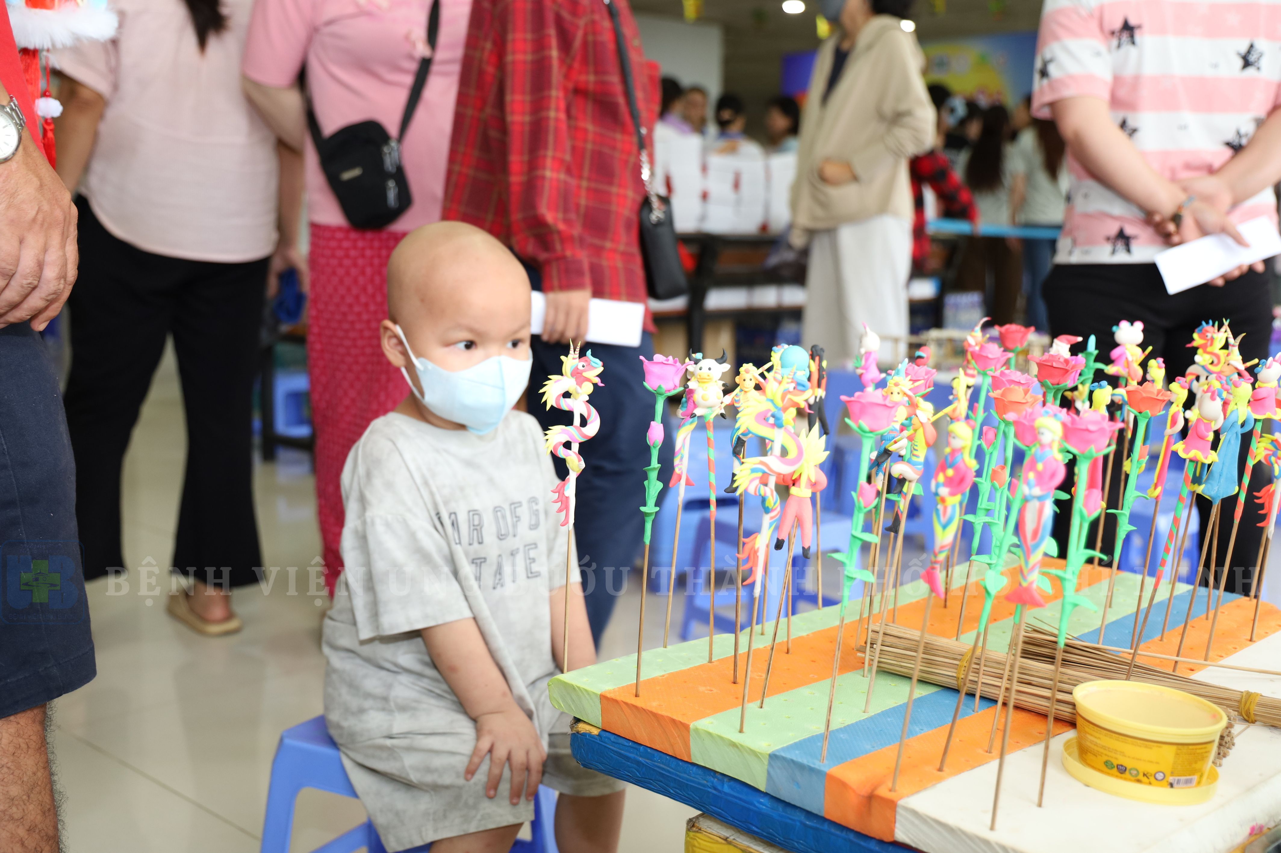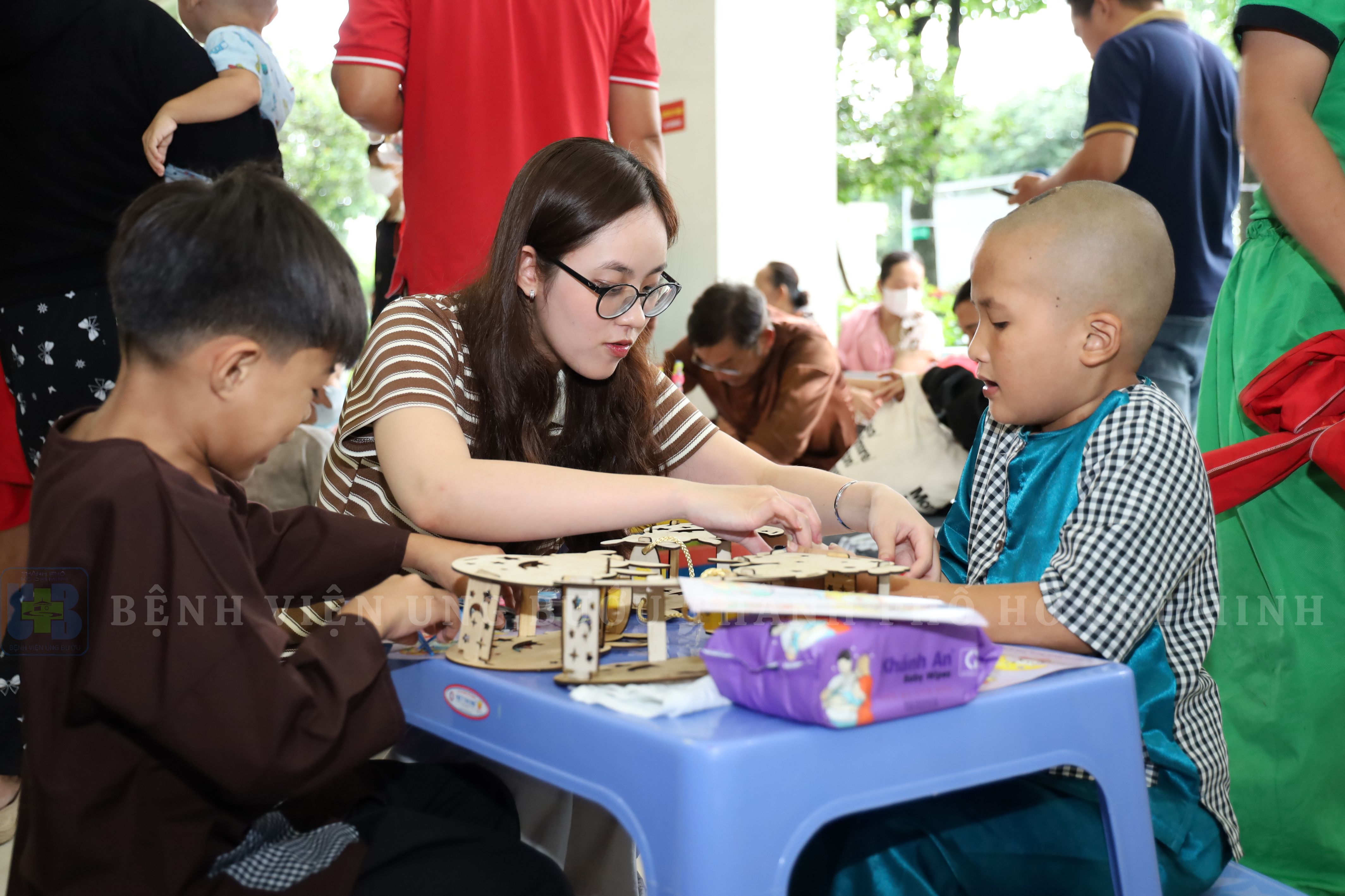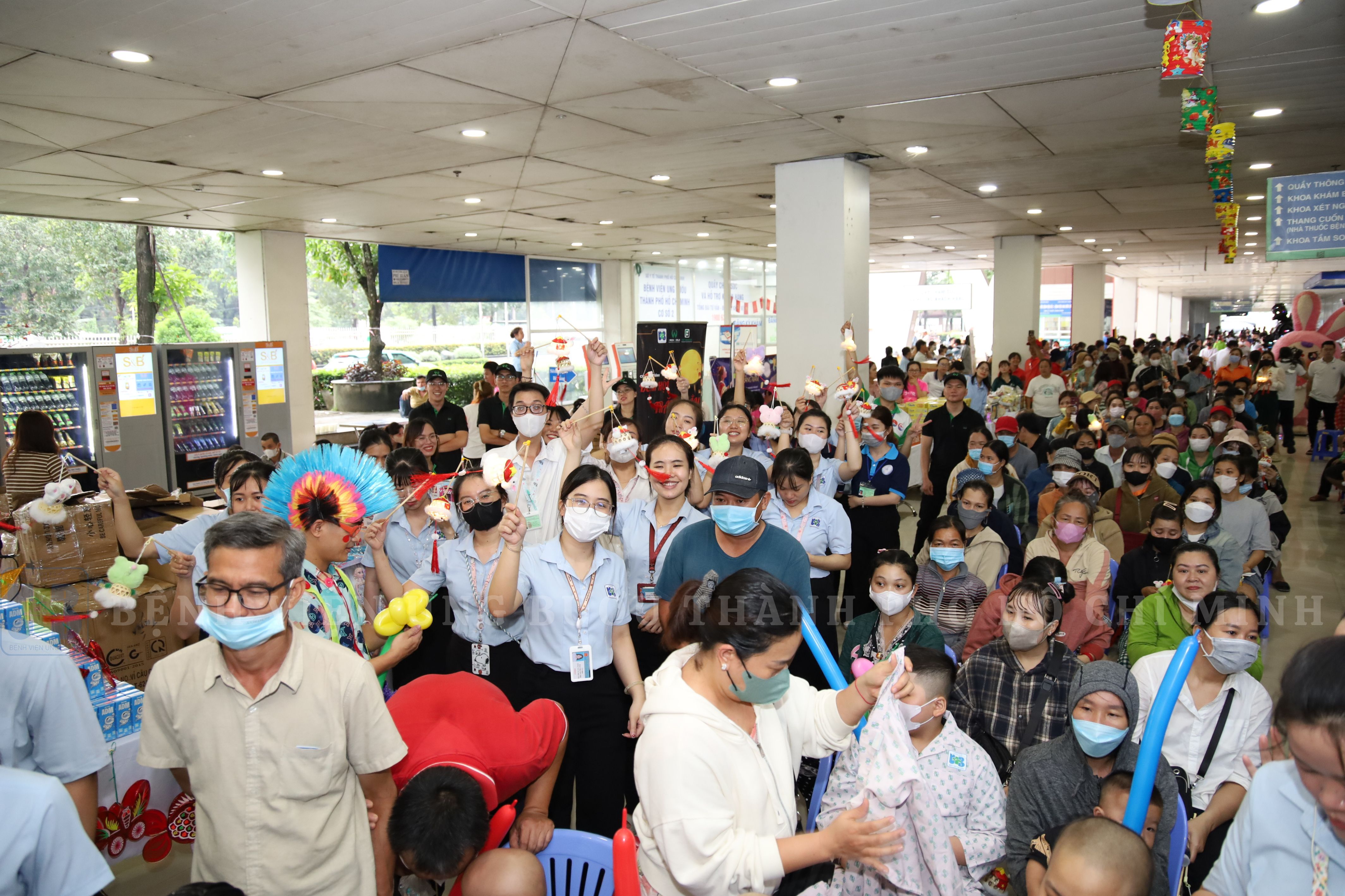 Ngay từ những phút đầu, các em hòa mình vào không khí lễ hội với chuỗi hoạt động phù hợp lứa tuổi: phá cỗ, múa lân, ảo thuật, văn nghệ thiếu nhi, rước đèn, chơi tò he, tô tượng và chụp ảnh cùng các nhân vật hoạt hình. Không chỉ là vui chơi, đó còn là những khoảnh khắc quý giá khi nụ cười trẻ thơ tạm xua dịu nỗi lo bệnh tật của các em và gia đình.